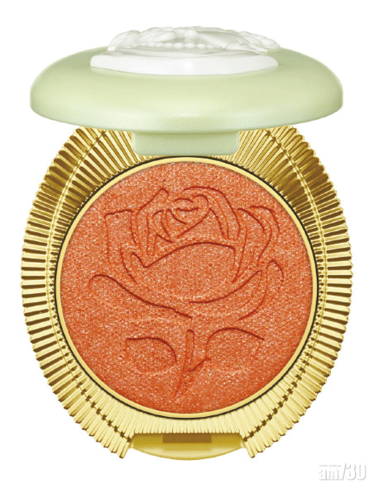 Step 2 以玫瑰光影蜜粉在面部凸出的地方打亮,當中蘊含的細緻紅色及藍色粉末粒子,能營造立體光澤感,實現透明亮麗的妝感;