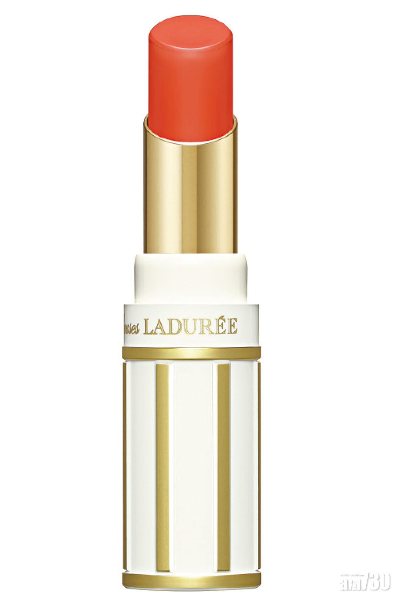 Step 4 最後塗上珊瑚紅色水光亮彩唇膏,為雙唇增添水潤柔滑的迷人效果。