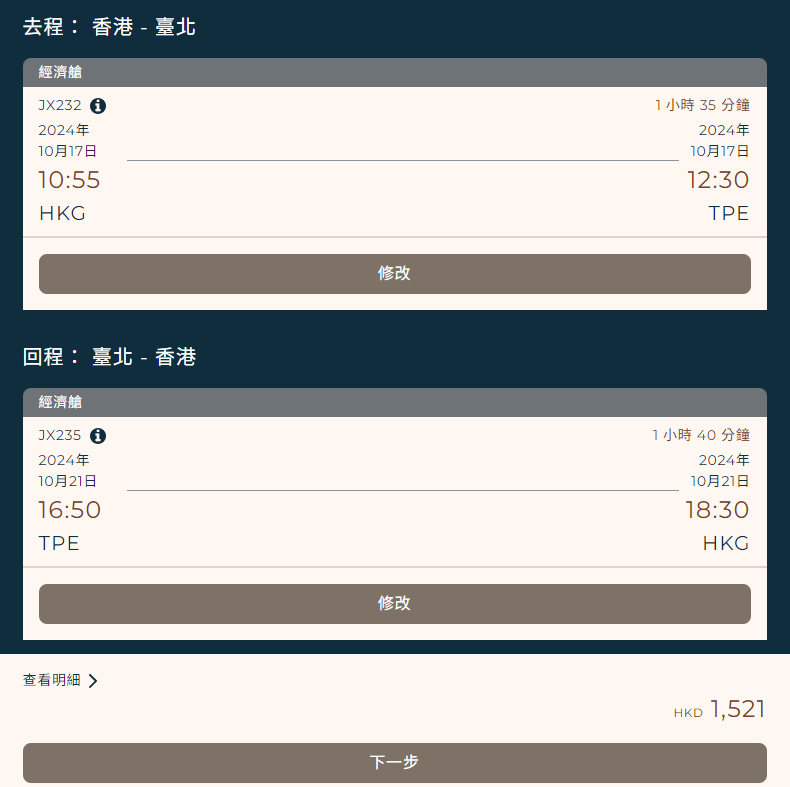 星宇航空將於7月16日起啟航,以A330/350機隊執飛,每日共有兩班。今日於官網正式開賣,來回連稅$1,521起。於官網輸入優惠碼「JXHKG200」,即減$200。即來回連稅最平$1,321,包23kg寄艙行李。想飛台灣的你不妨試試新航空!