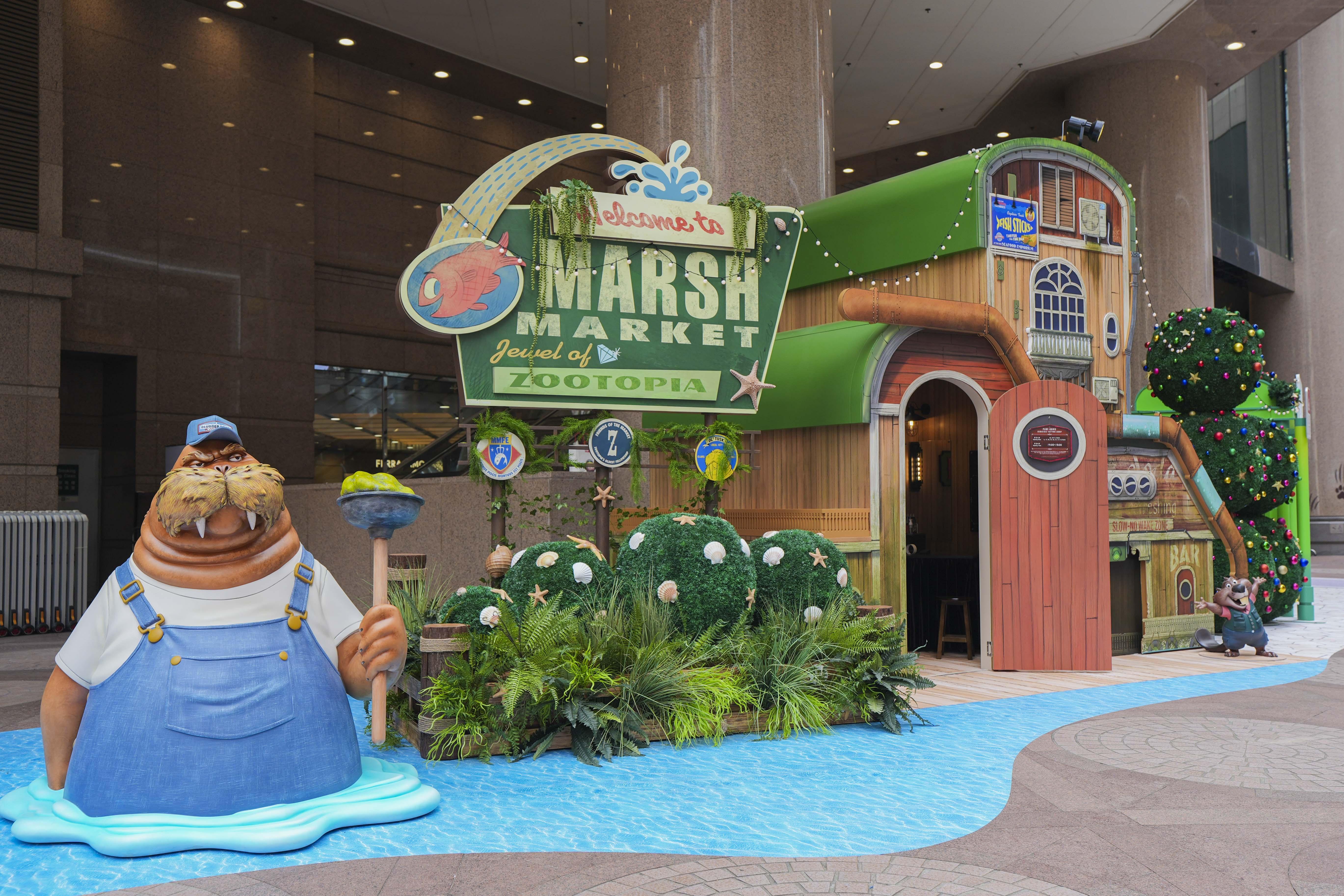 離開車站後,可看到《優獸大都會2》電影新場景「沼澤市場 Marsh Market」,角色海哥 Russ 和麥狸寶 Nibbles 會在此現身。市場旁的小屋打造成紋身店主題空間,並會在部分日子舉行彩繪活動,讓參加者繪畫喜愛的角色。