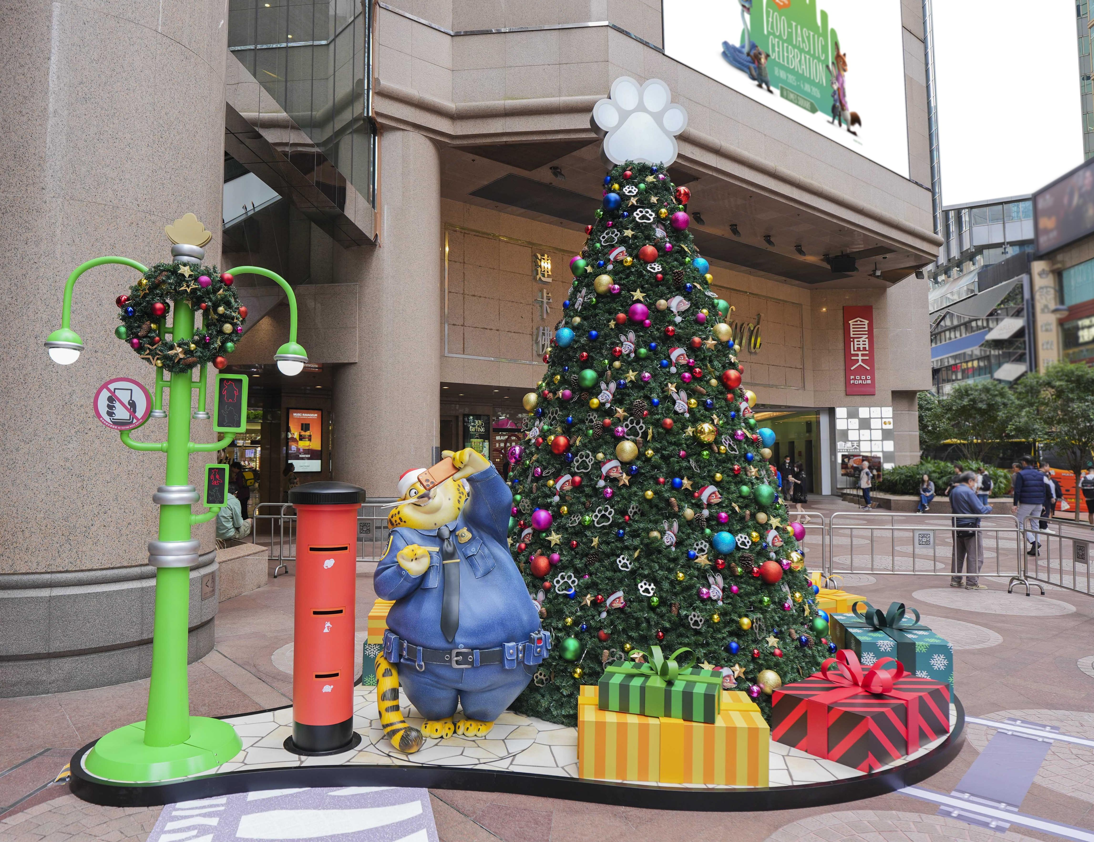巴士站位置,樹懶阿閃 Flash 和朱迪的場景亦會同時展出。此外,遠處亦有一棵約 4.8 米高的聖誕樹,配上角色造型掛飾和禮物盒。亦設有賓治 Clawhauser 的打卡場景,並加入鏡面手機設計方便合照。