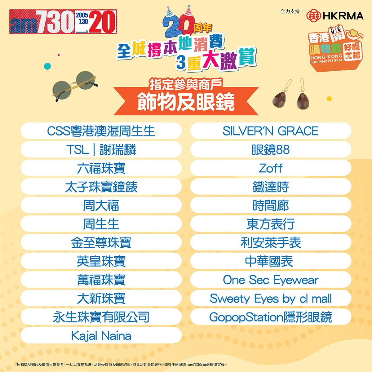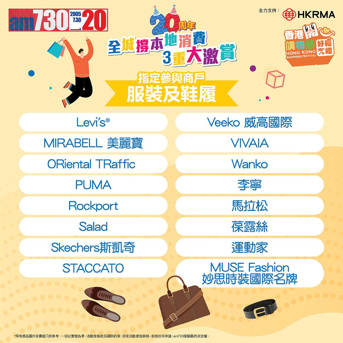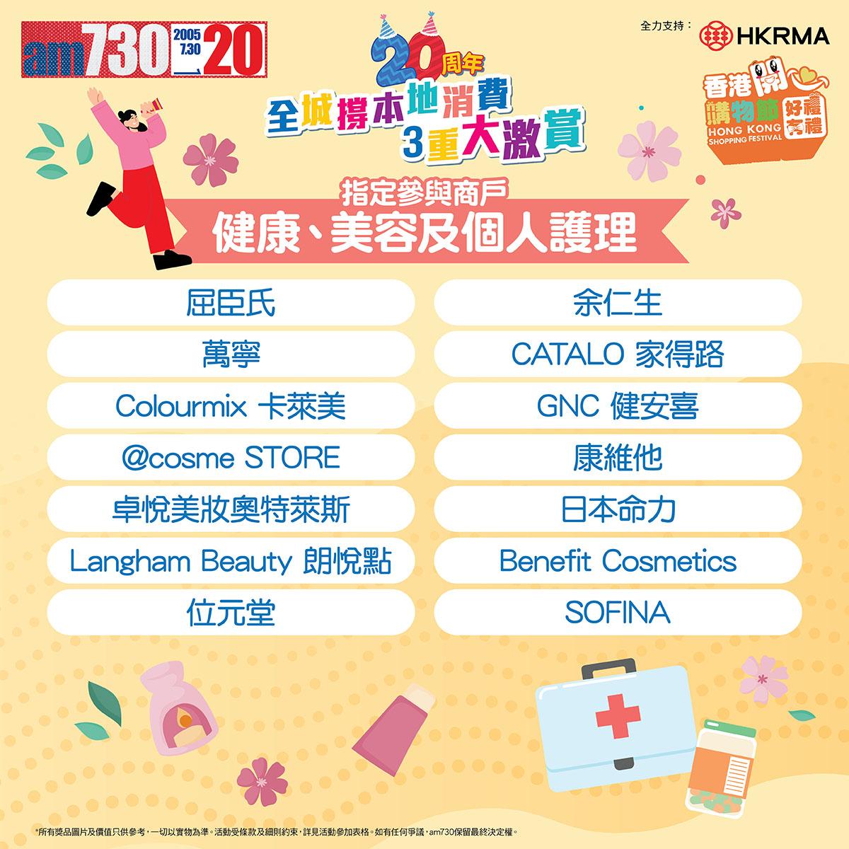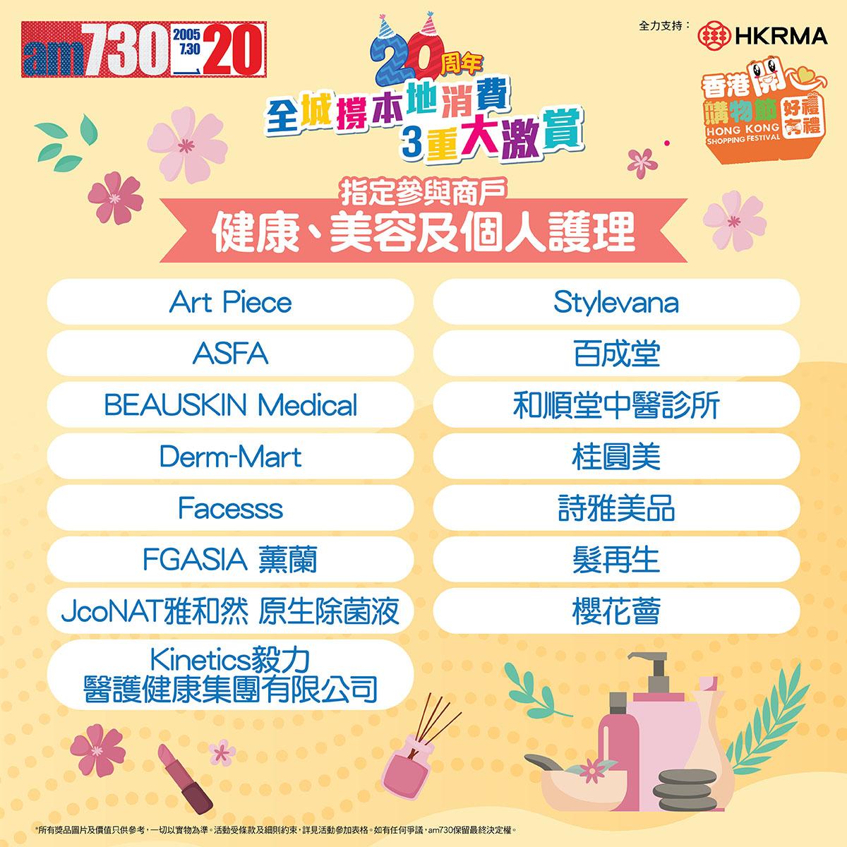 am730 20周年「全城撐本地消費3重大激賞」豐富獎品 - 時尚生活類 am730 20周年「全城撐本地消費3重大激賞」豐富獎品 - 健康美容及特選禮券類