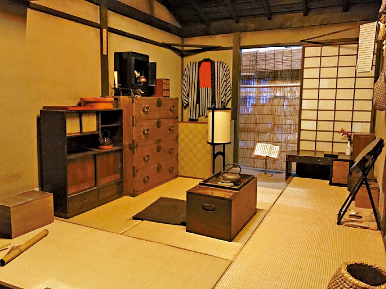 居民放了真實日用品,可隨意入宅參觀及觸摸,每間屋會設定家族成員、職業和年齡等,並陳設符合他們生活狀態的用品;其中一間便居住一位三十多歲的寡婦禦津女士,以教人唱歌為生,故家裡擺放樂器和可愛精品。展品隨季節更換內容,新年期間到來,可見江戶時代過年情況。