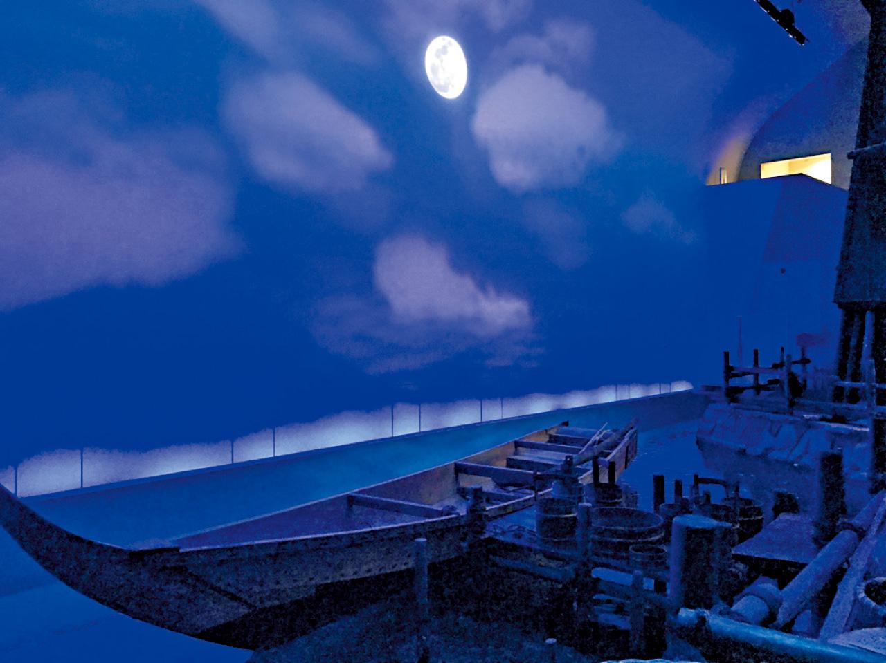 以燈光營造日夜效果。