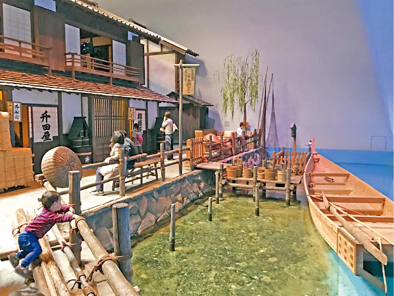 現在的深川經過填海拓地,在江戶時代水運是相當發達。館內設有貨運碼頭,旁邊有船舟旅館,雖然是旅館,據說不是主要給船員住宿,而是給當時的男女密會之用。