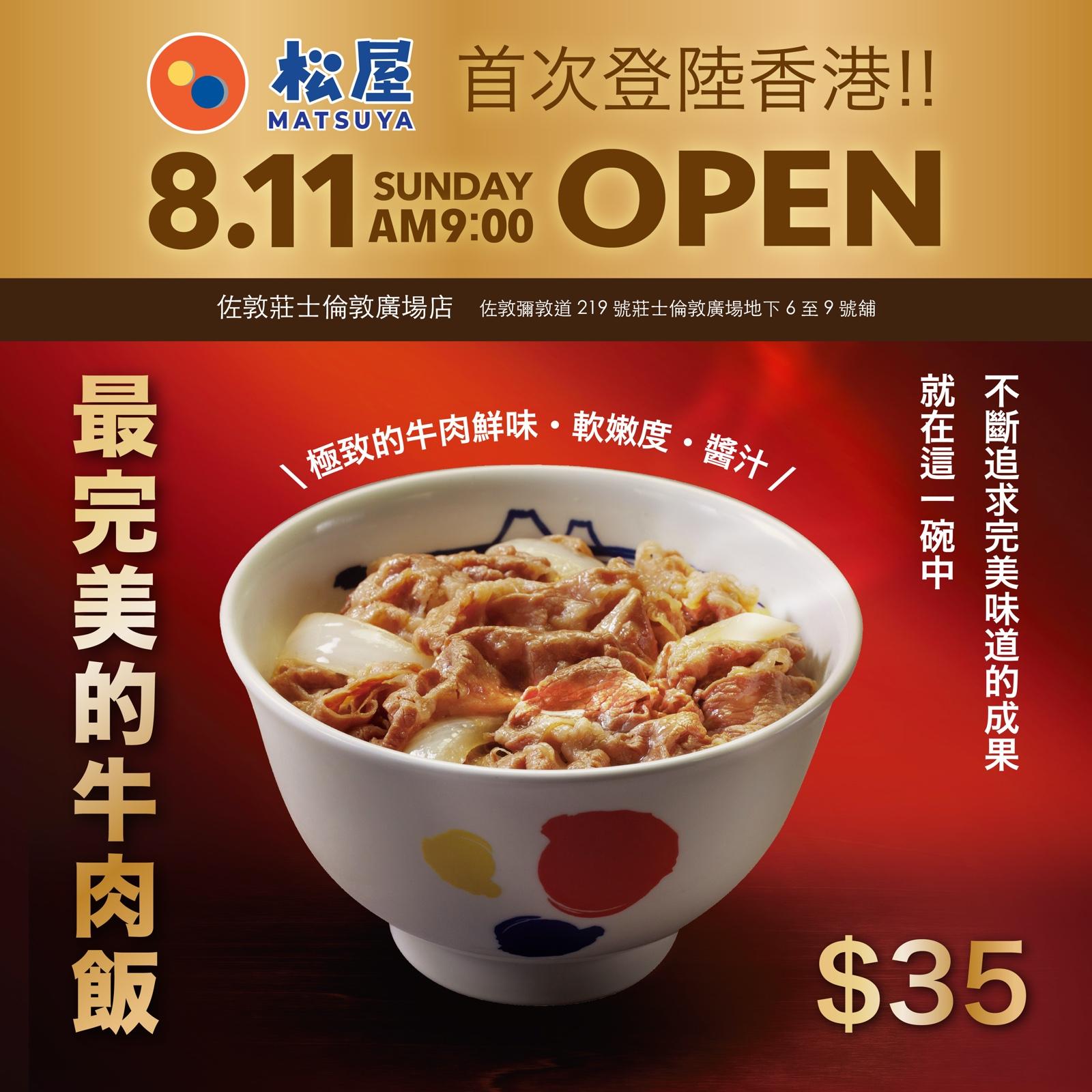 松屋香港首間直營店將於8月11日登陸佐敦,並於8月10日上午9點至晚上8點進行試業營運。其官方Facebook率先曝光餐點,牛肉飯只需$35就吃到,絕對是窮人恩物!