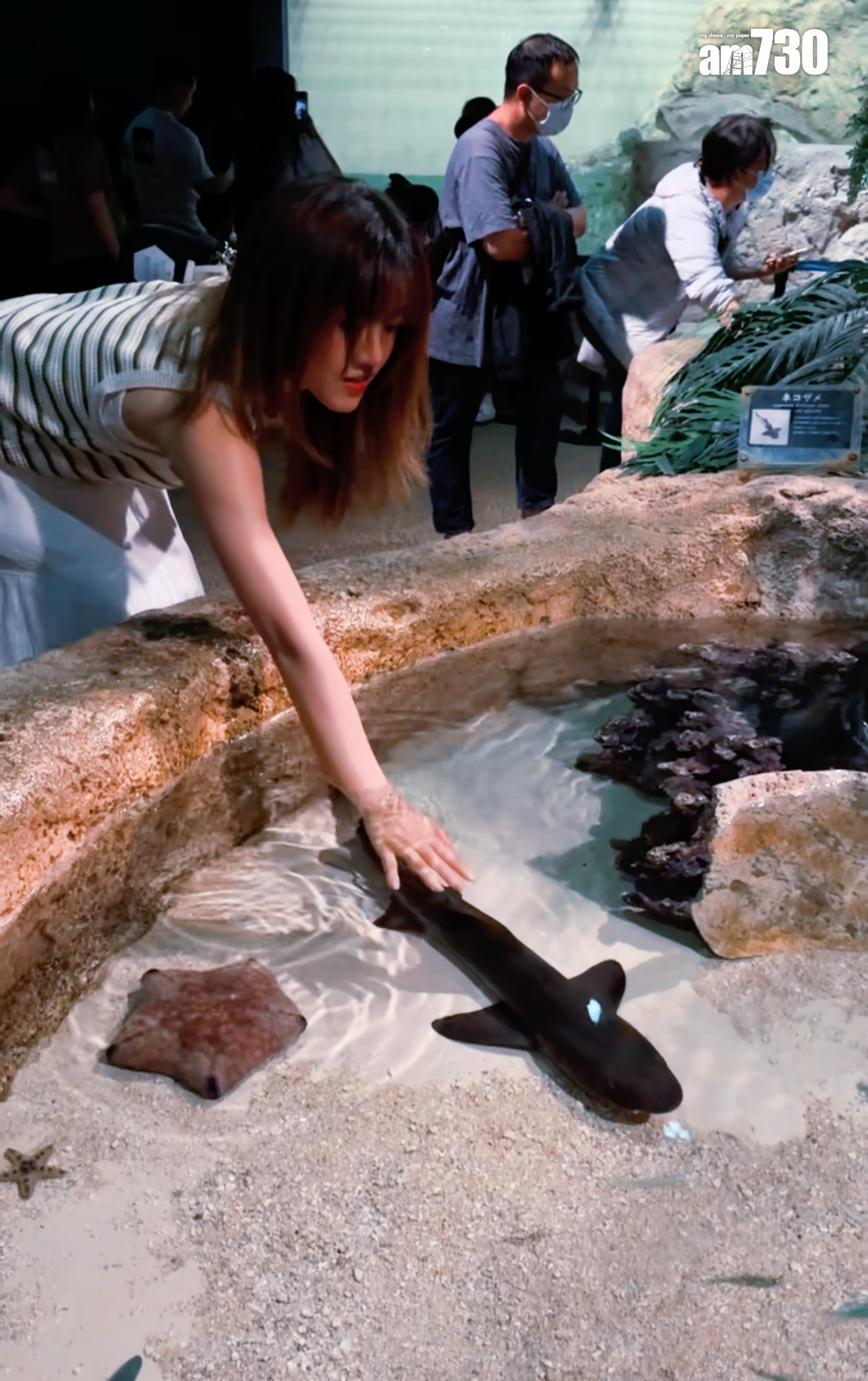 觸控池內有鯊魚、海星、海參等,看上去滑滑的鯊魚,原來觸感十分粗糙。