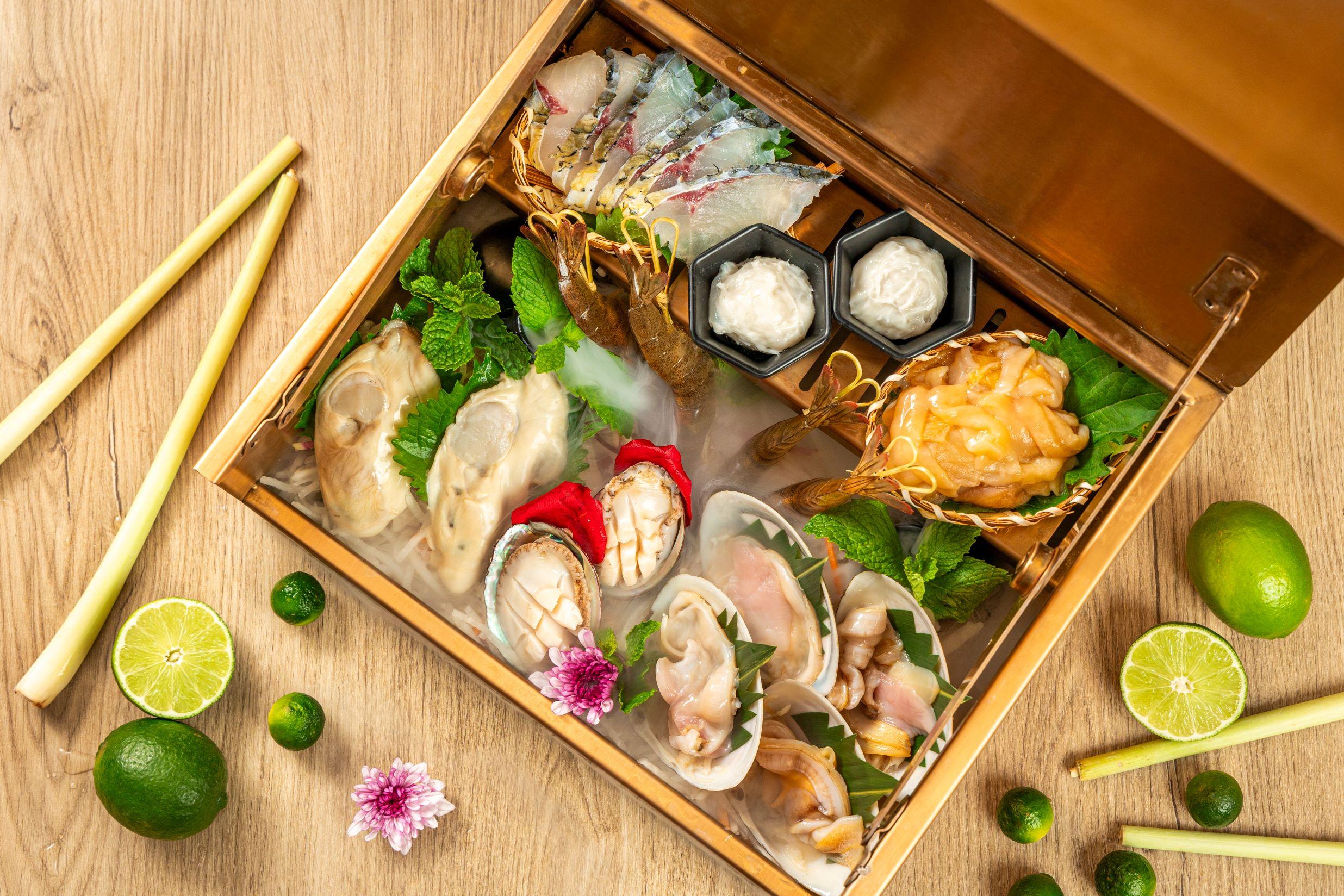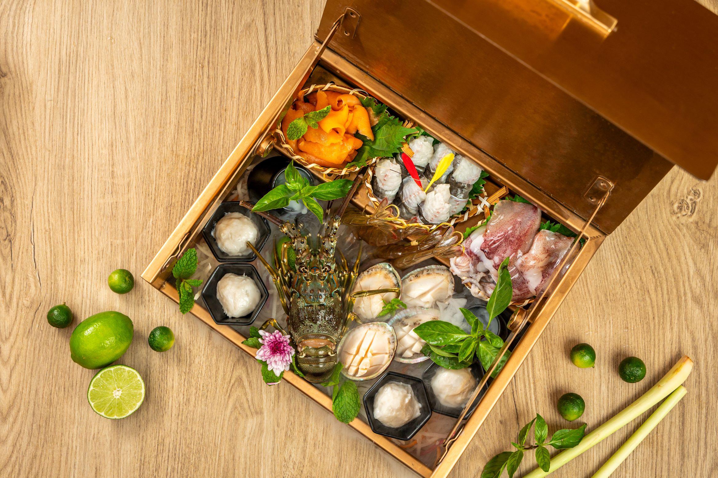 香港店開業期限亦有限定優惠,如果有興趣品嚐泰式火鍋湯底,客人可以優惠價錢,任選一款招牌鍋底及品嚐到寶藏海鮮手工金盒一款(2人份量: $488 或 4人份量: $588),寶藏海鮮手工金盒內包含鮮活鮑魚仔、生猛海蝦、蚌和墨魚丸等本地優質生猛海鮮,份量足料!另外為滿足各位食肉獸,當然不少得四面泰牛肉拼盤 ($288),一個拼盤包含了四大牛肉部位,包括: 牛小排、牛板腱、肥牛和牛舌,配搭惹味湯底,香口開胃!