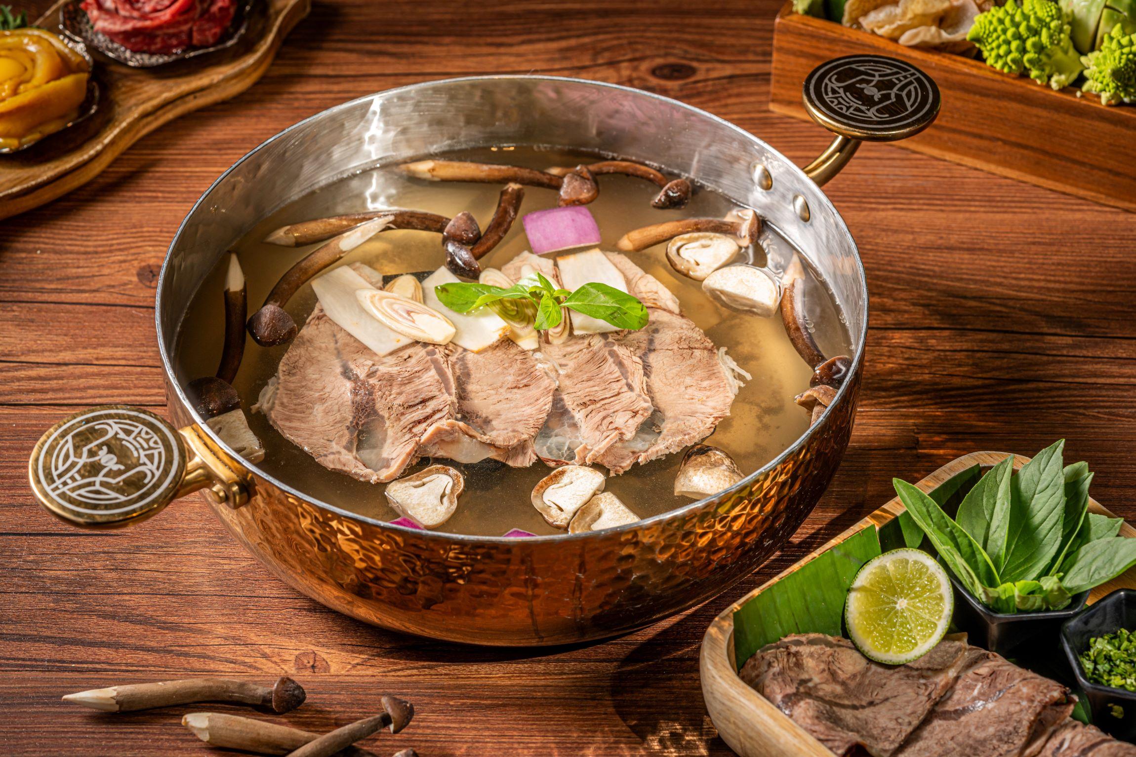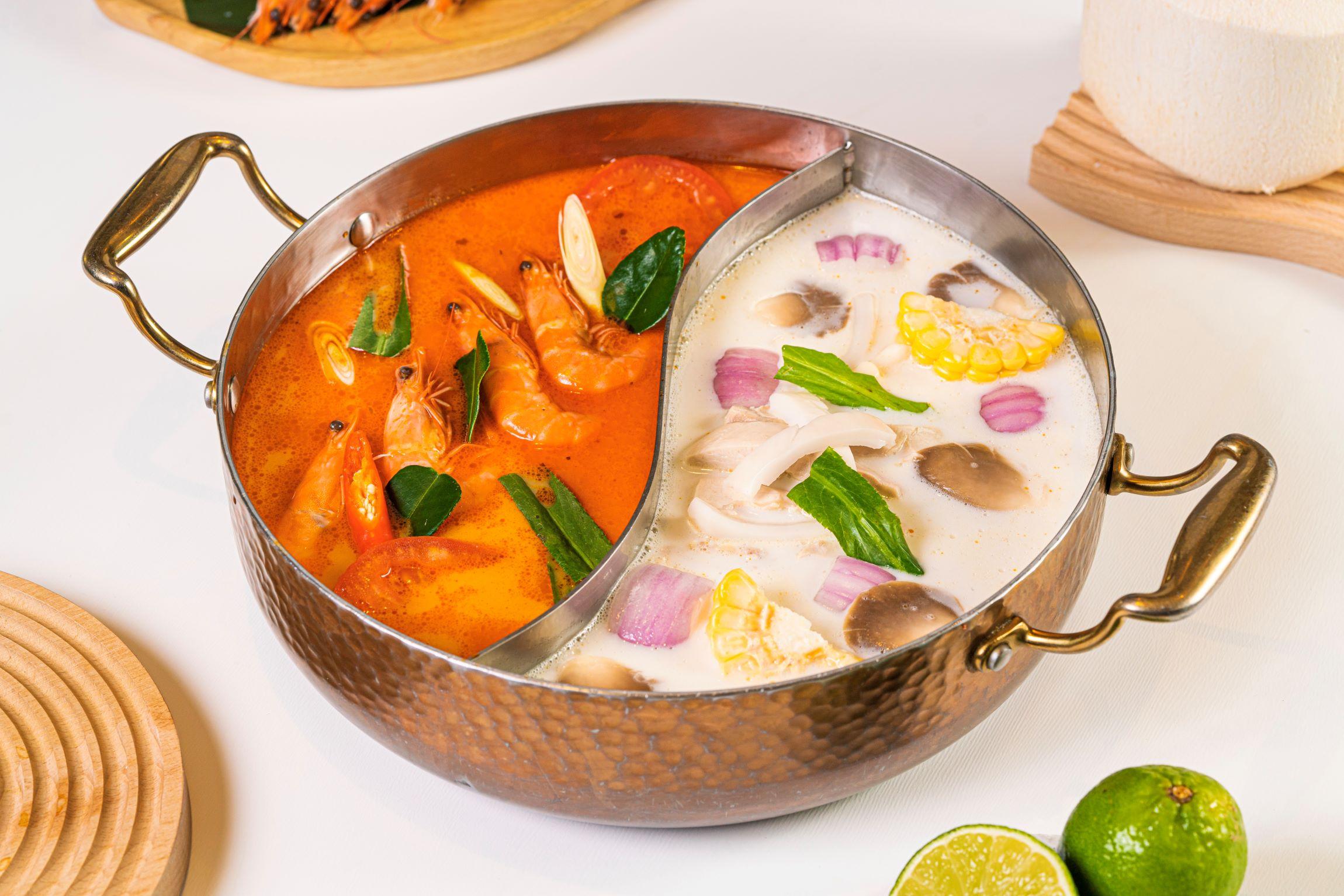 「四面泰」在上海設有七家分店,遍布環貿IAPM,國金IFC等地標商場,口碑不俗,開業短短4年便以每日新鮮自家熬制的正宗泰式湯底打嚮名堂,連續兩年獲得大眾點評必吃榜殊榮,公認味道好。今次在港開店,亦為香港客人帶來招牌美食和秘制泰式湯底,包括秘制冬陰功鮮蝦鍋($198)、椰奶雞湯鍋($128)、以及慢燉牛板腱清湯鍋($128)。心水推介秘制冬陰功鮮蝦鍋,按泰國傳統古法熬制,重點先採用新鮮食材煮湯,主廚先將生猛海蝦、花甲和辣椒膏一起炒香,再用上大量的泰國香料熬煮,用料扎實,色香味俱全,食客吃火鍋之可以先喝湯,品嚐湯頭鮮味。