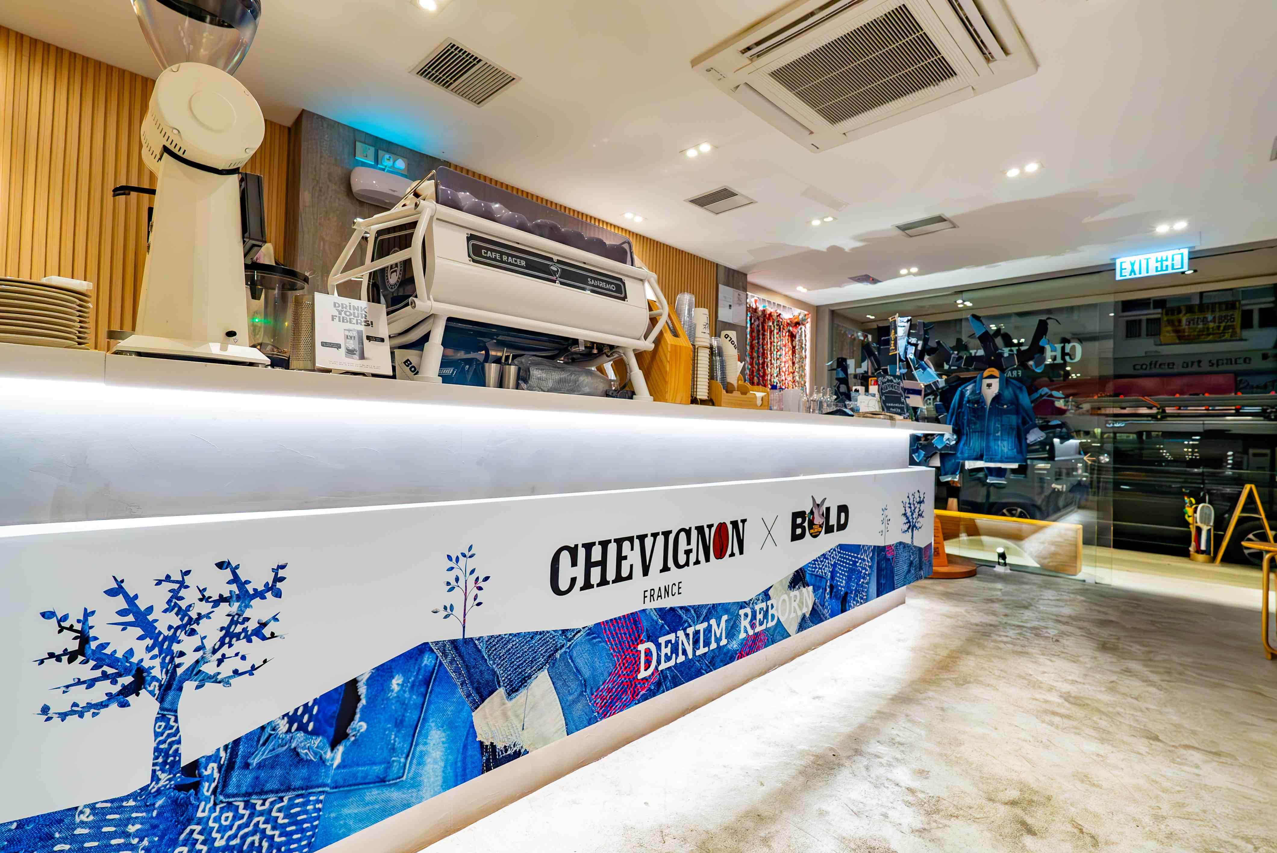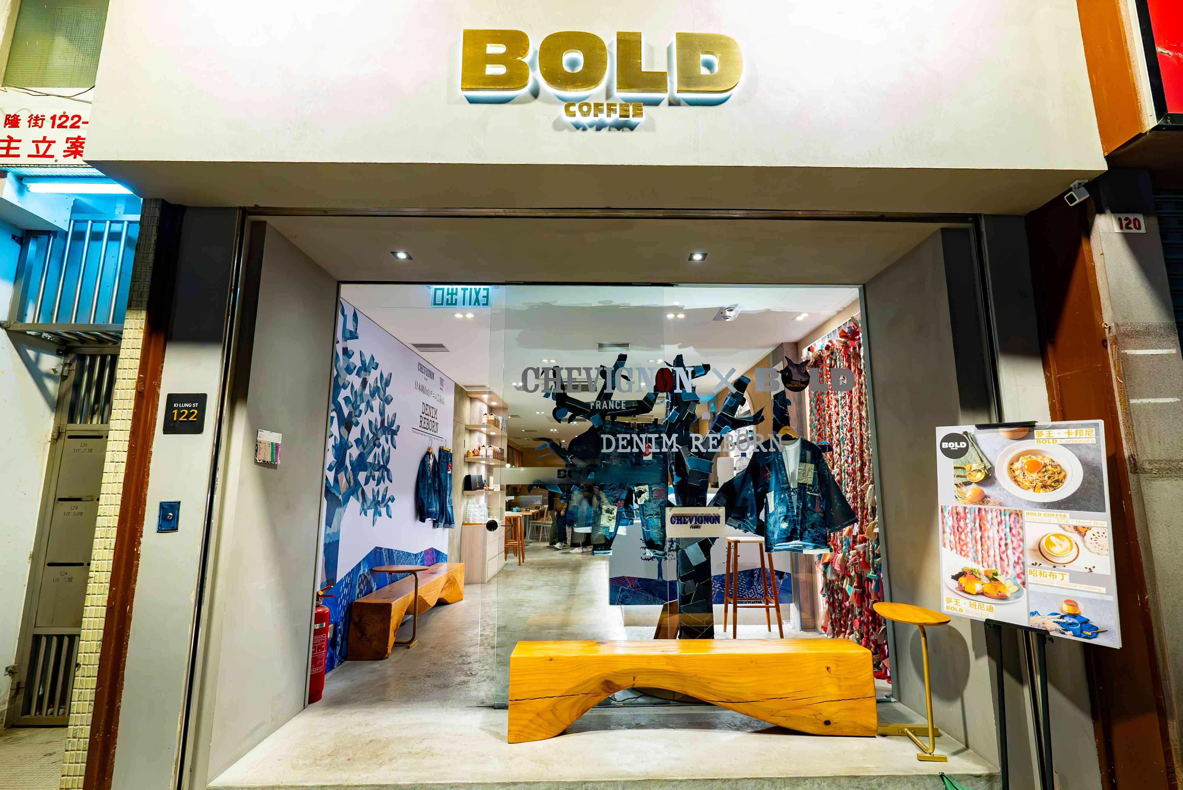 BOLD COFFEE 店內更設樹型藝術裝置展示 Chevignon x Whoval 的聯乘系列,讓牛仔迷及 café 愛好者先睹為快!「Denim Reborn」以牛仔布樹作為重生的象徵,強調本次聯乘系列以日本匠人拼布(ぼろ)及刺子繡(刺し子)工藝為平日剩餘的牛仔布庫存注入新生命,註解經典新生,寓意新年全新出發。