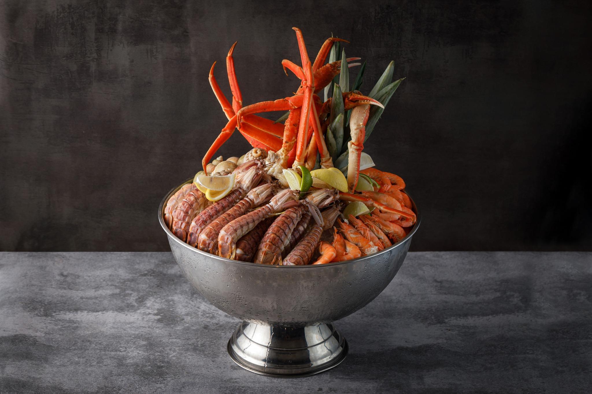 冰鎮海鮮、刺身:雪場蟹腳、麵包蟹、加拿大青口、深海池魚、赤蝦、希靈魚、北海道帶子