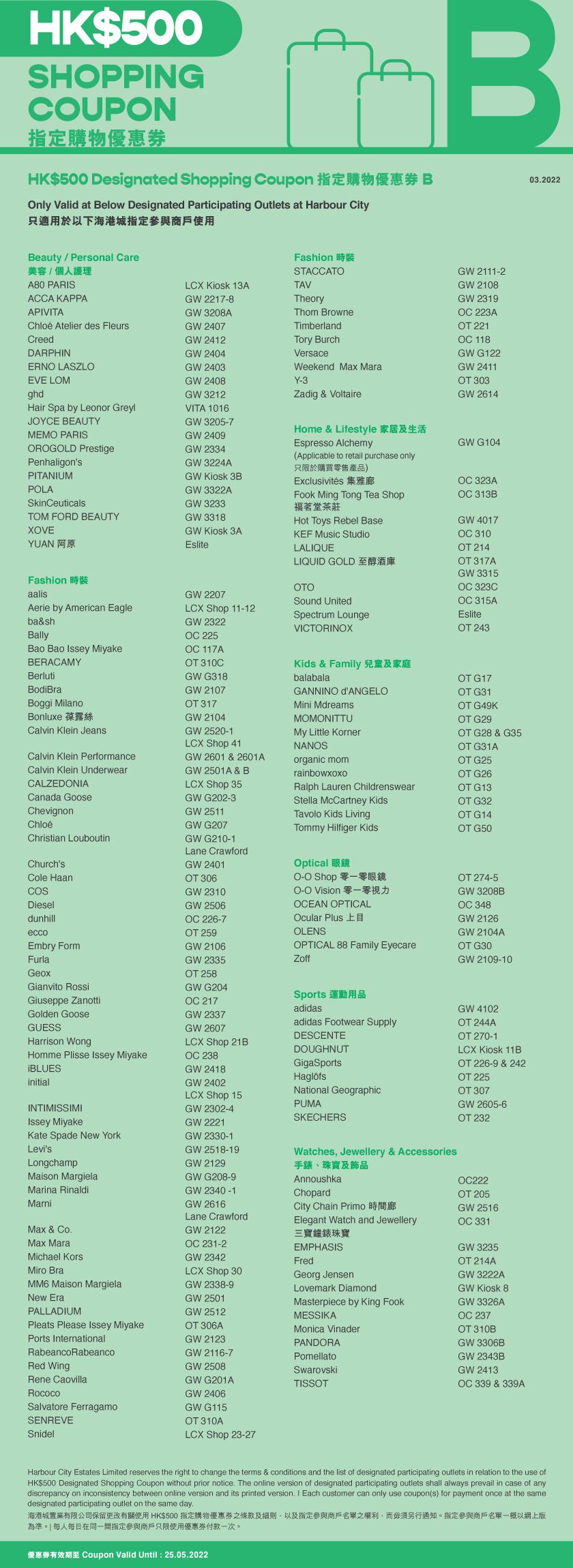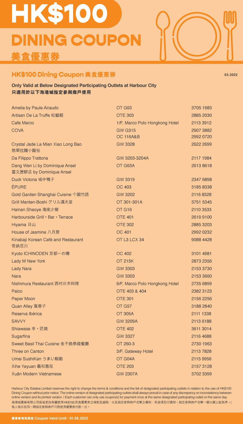 「TODAY BEST OFFER」每周參與商戶詳情:https://www.harbourcity.com.hk/tc/happening/today-best-offer/