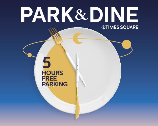 時代廣場特意推出Park & Dine優惠,由即日至4月30日期間,顧客於下午6時或之後於時代廣場泊車(以入車時間計算),並即日於餐飲商戶或city’super以單一消費滿$100或以上 (下午6時或之後),即可享5小時免費泊車優惠。而由即日起4月30日,於星期一至五到時代廣場消費滿$200或以上,即可獲得3小時免費泊車優惠;於星期六、星期日及公衆假期消費滿相同金額,亦可獲2小時免費泊車優惠。