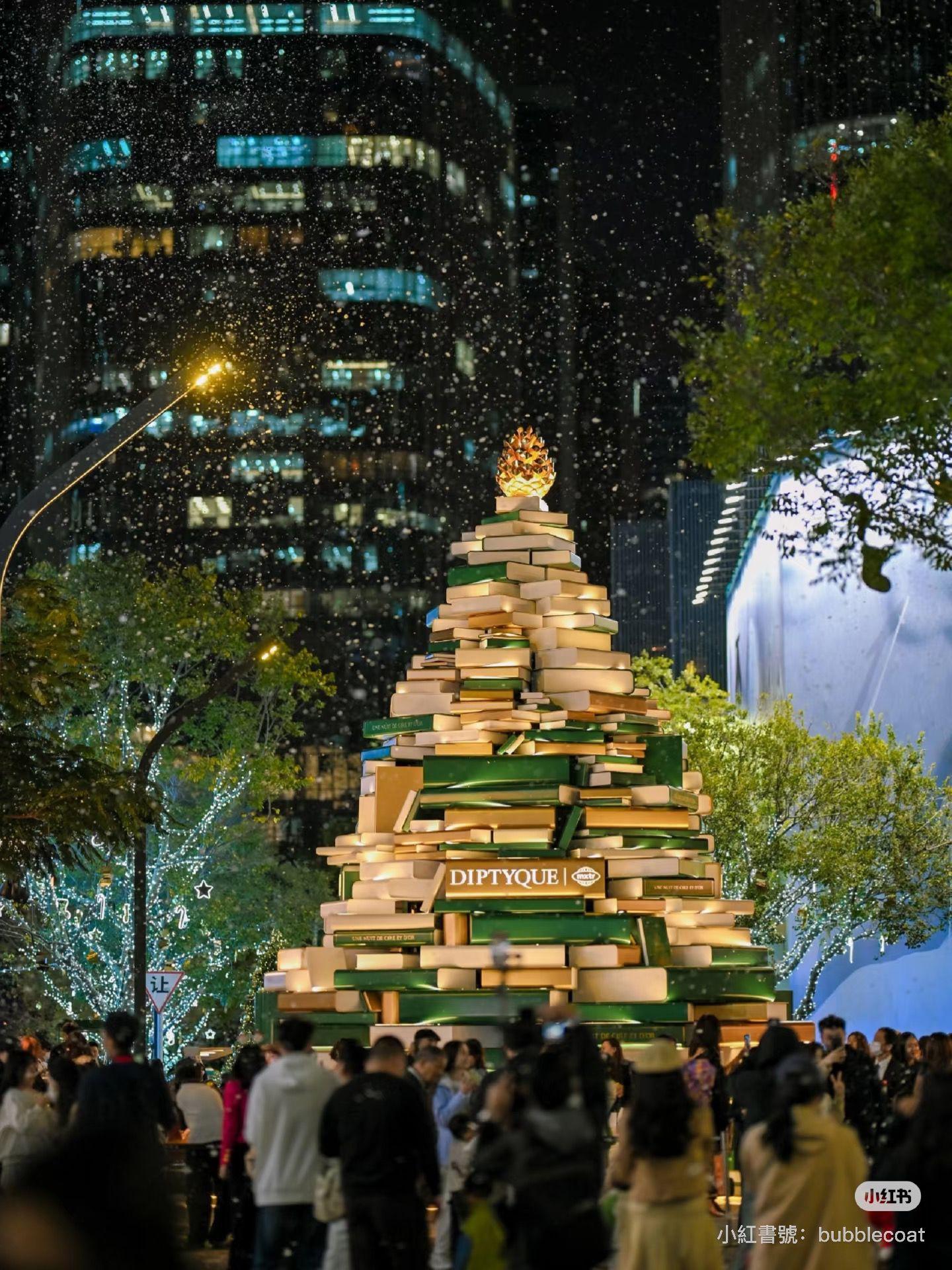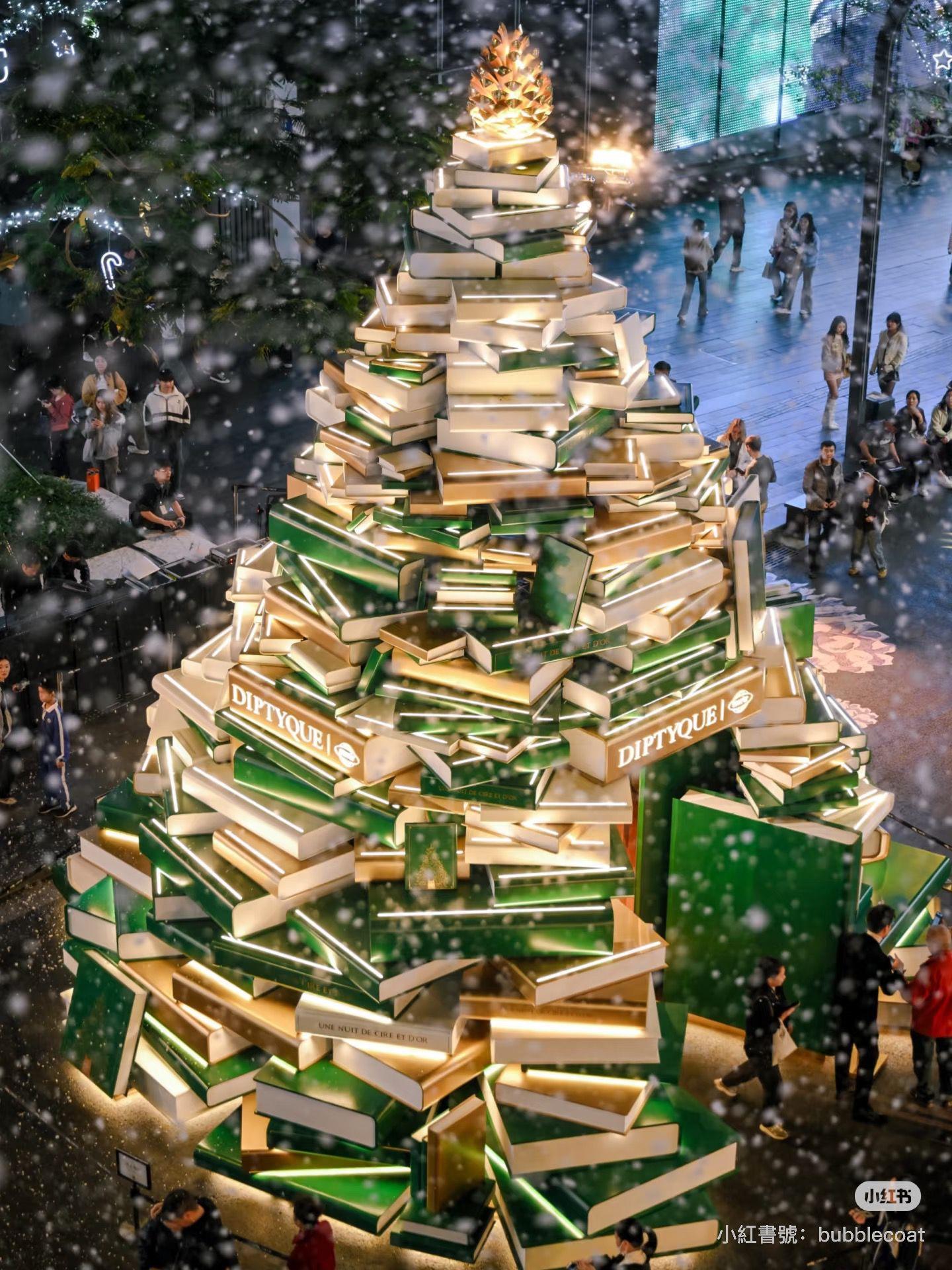 深圳聖誕好去處|萬象天地:10米高DIPTYQUE金色書本聖誕樹