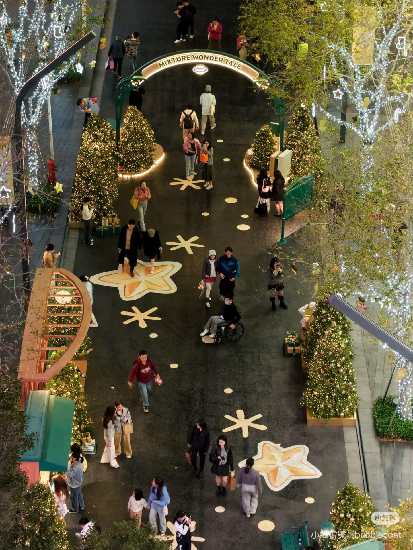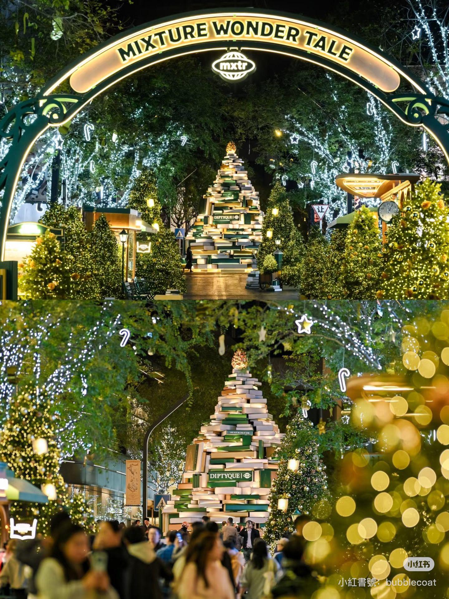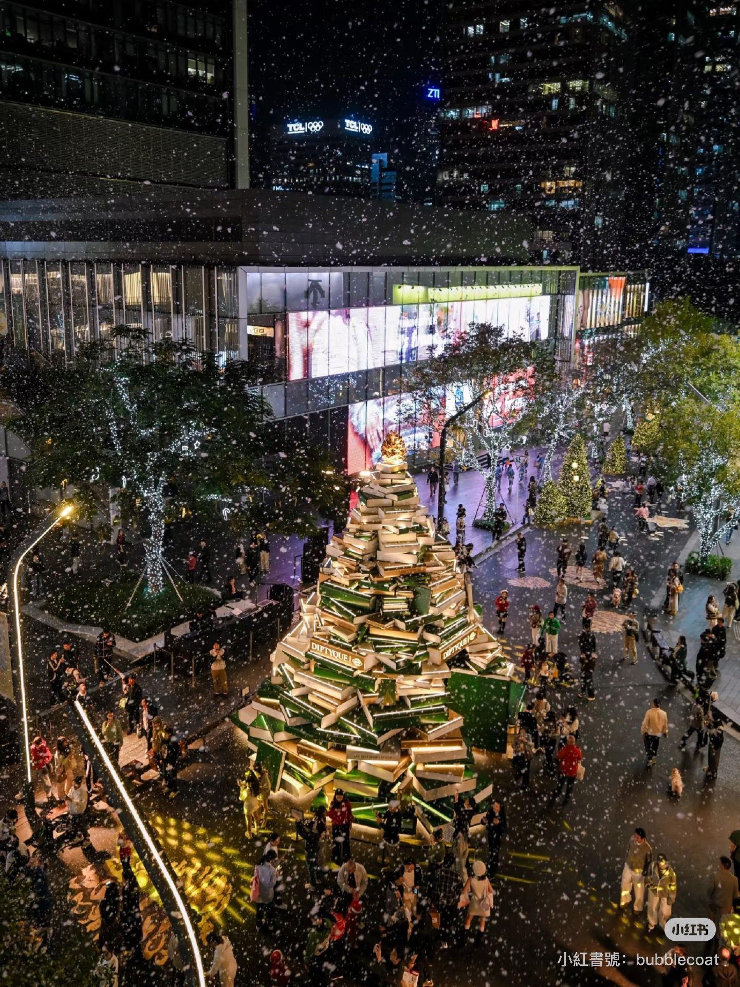 深圳萬象天地今年以「Mixture Wonder Tale 奇遇書局」為主題,整個街區化身成充滿書香與魔法氣息的冬日森林。沿着150米長的聖誕森林大街,最搶眼的是以巨型書本堆砌而成的10米高金色聖誕樹,其次是閃閃發亮的百米星光大道,以及DIPTYQUE聯名打造的無人書局。指定時間還有飄雪與燈光秀,營造出有如歐洲市集般的節日氣氛。由下午金光到夜間燈飾,每個時段的景致都不同。建議在黃昏前後到訪,能一次影到日落與燈光交錯的最靚畫面。
