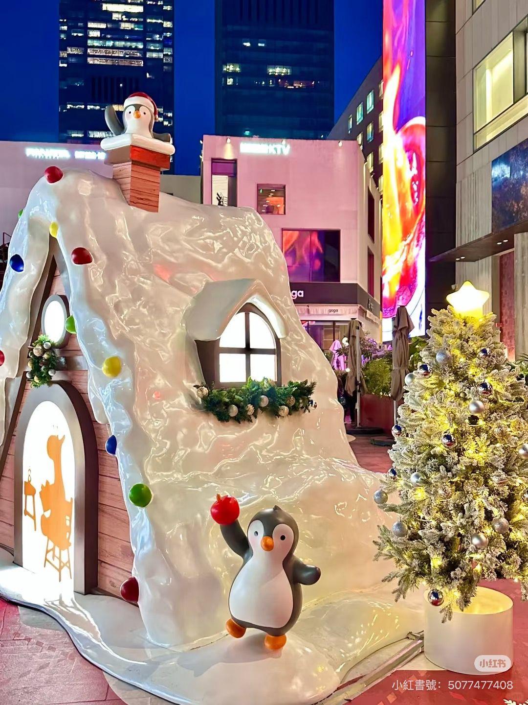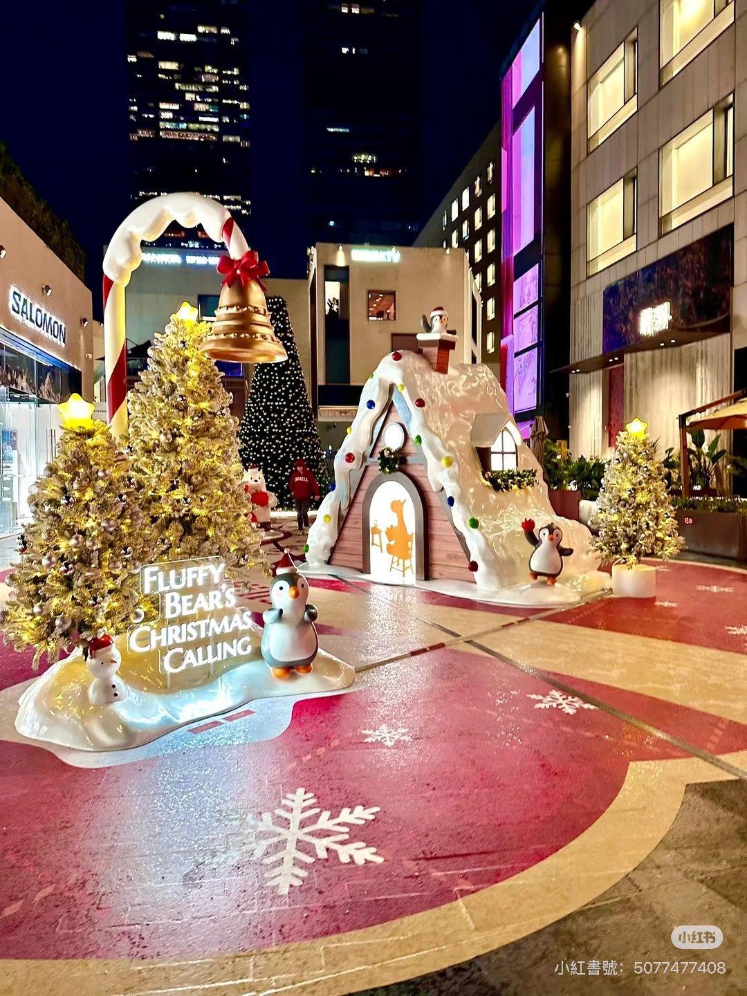 三樓小鎮西廣場更打造成銀白森林,以銀色聖誕樹、企鵝、雪屋及巨型紅白糖果布置,小鎮北街則有禮物櫥窗,中庭有純白噴泉。建議夜晚前來,燈飾亮起後整條街都變成童話場景,非常適合影相散步。