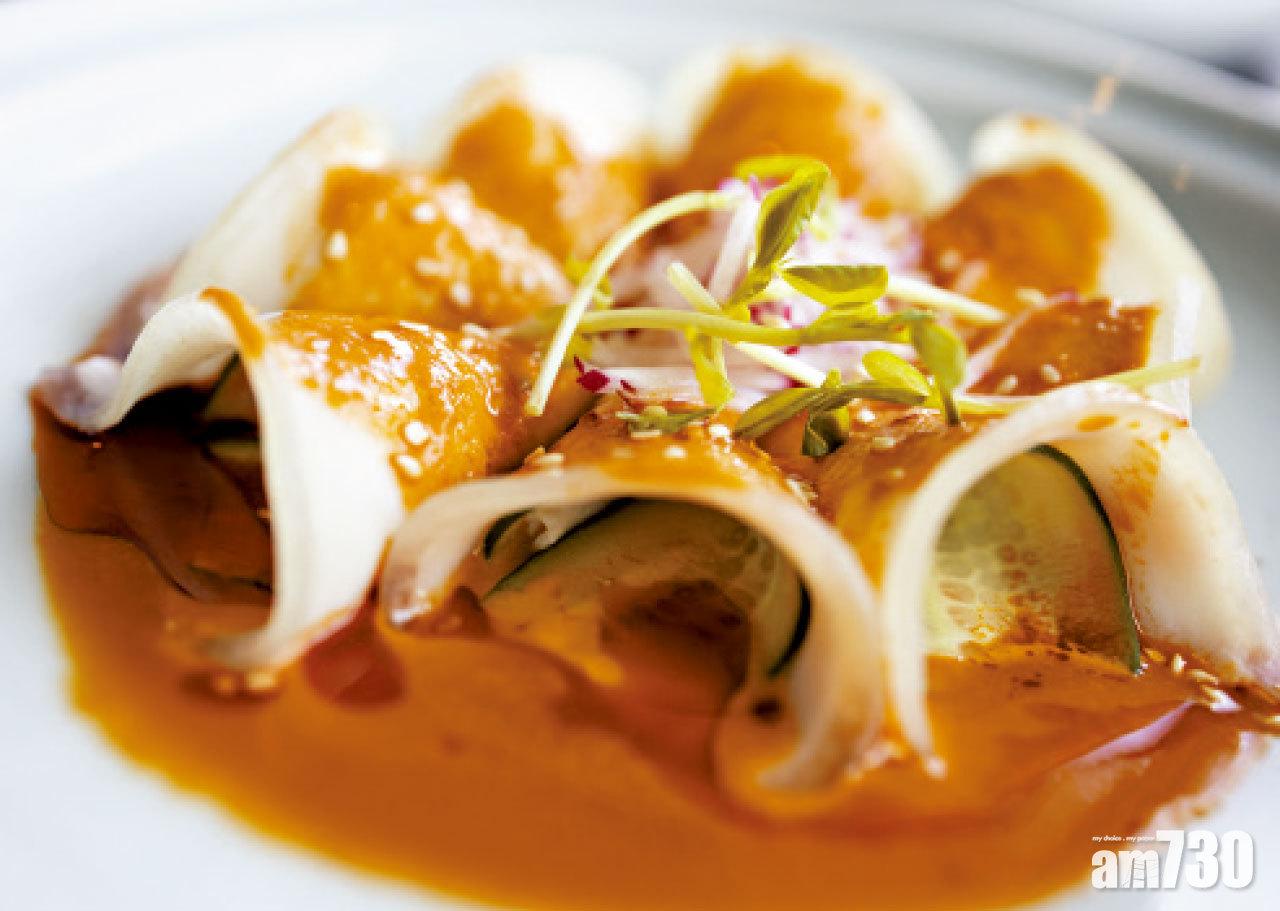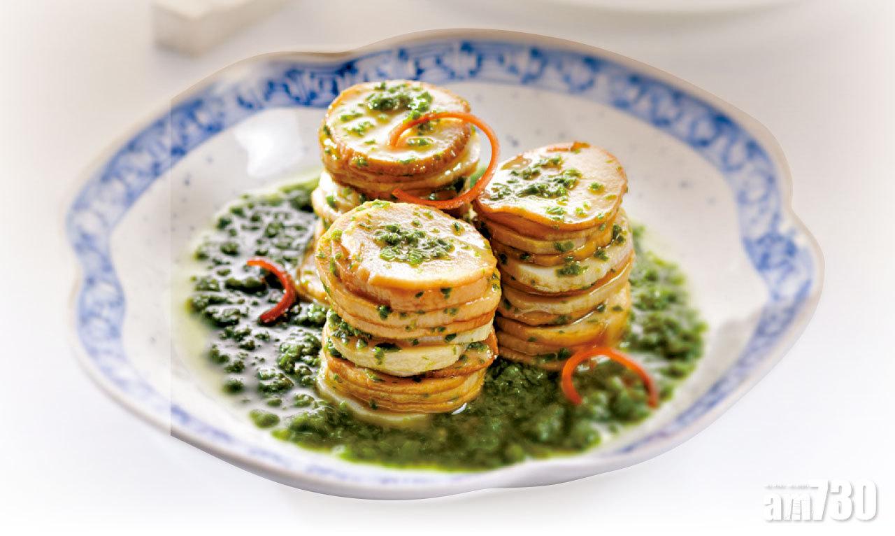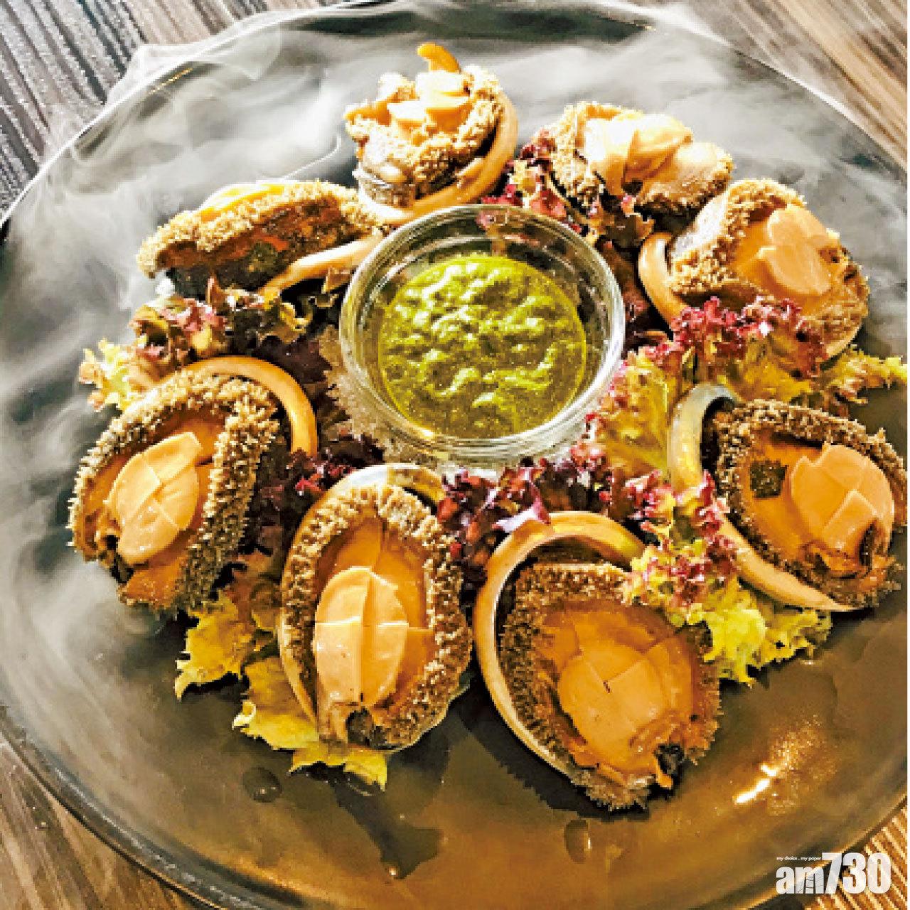 椒麻南非鮮鮑,大廚以川菜二十四種經典味型中的椒麻與鮑魚搭配,加入店方秘製椒麻醬,花椒香氣令鮑魚的鮮味更為突出,是耳目一新的嘗試。$168