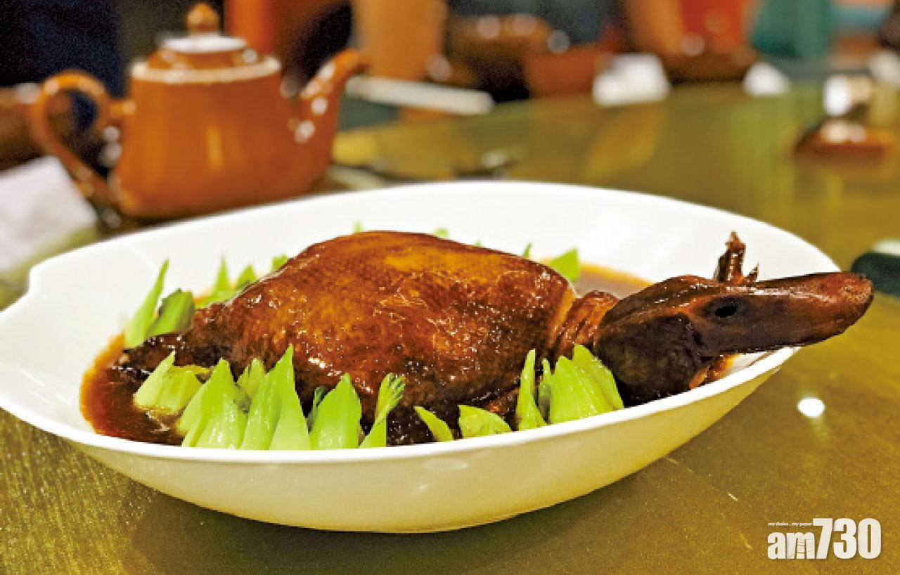 冷盤除了傳統的醃黃瓜、雲耳,這道香蔥雞髀菇甚有新鮮感,師傅將爽身雞髀菇切片,再撈上蔥油及青蔥汁醃至入味,另有同為素冷盤的牛油果素鴨卷,同樣新穎。$65