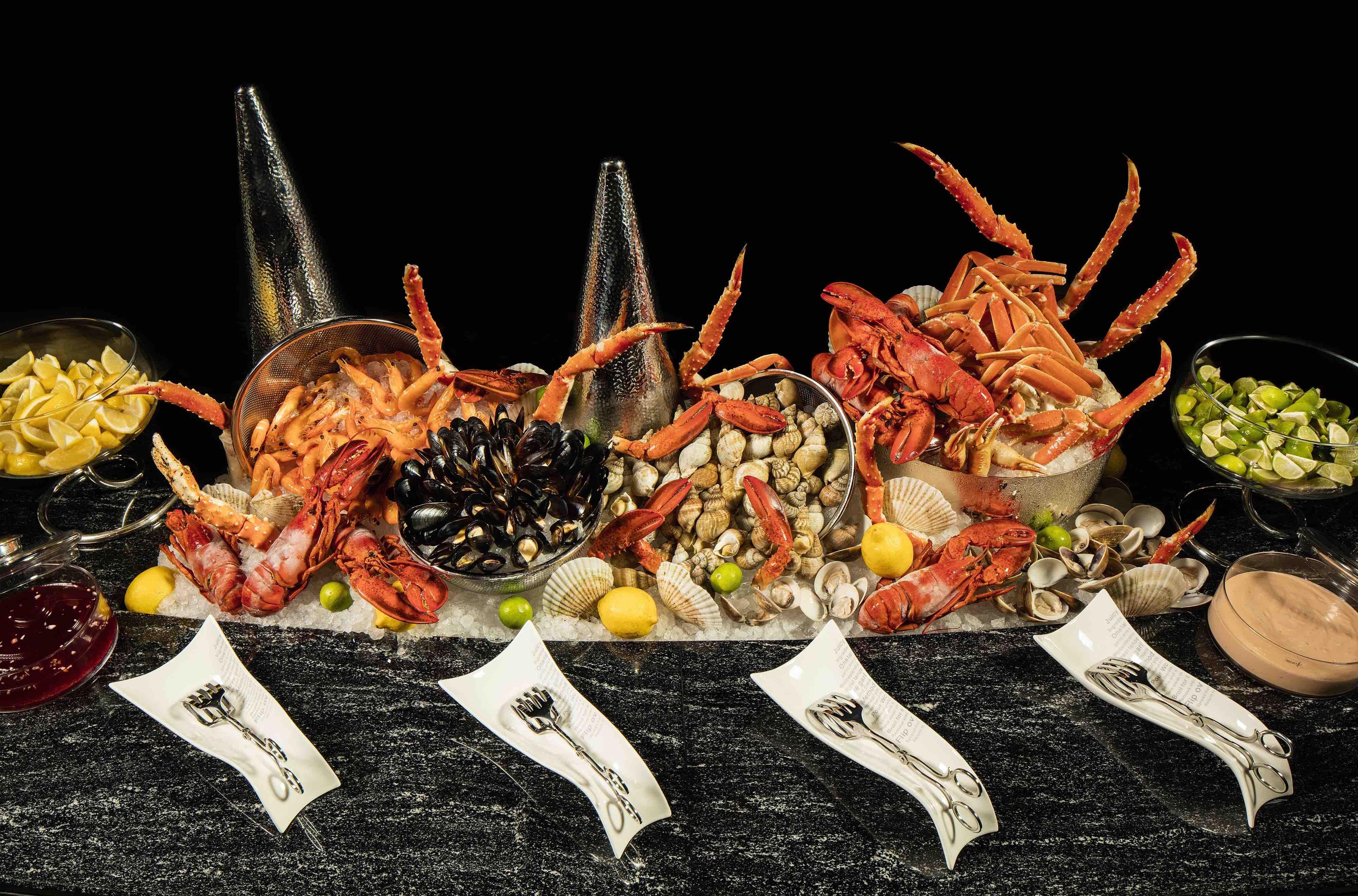 星滙自助餐的星級廚師團隊積極搜羅至新鮮的海陸空食材,即席炮製各式星饌,色、香、味誘人,食指大動。星滙海鮮烤肉自助晚餐菜式豐富,包括席切原條黃鰭吞拿魚、安格斯西冷牛扒、紐西蘭羊架、澳洲豬肋骨、大蝦等等,大廚在開放式廚房為您即席炮製波士頓龍蝦、深海龍躉、大連鮮鮑魚,剁椒蒜香四溢;少不了時令生蠔、雪蟹腳、切肉、鑊氣小炒、印度烤肉咖哩、中式燒味、鐵板燒、刺身壽司等等,更有全新登場的兒童美食區、琳瑯甜點及朱古力噴泉,豐盛多元選擇,全方位照顧每一位客人的美食追求。
