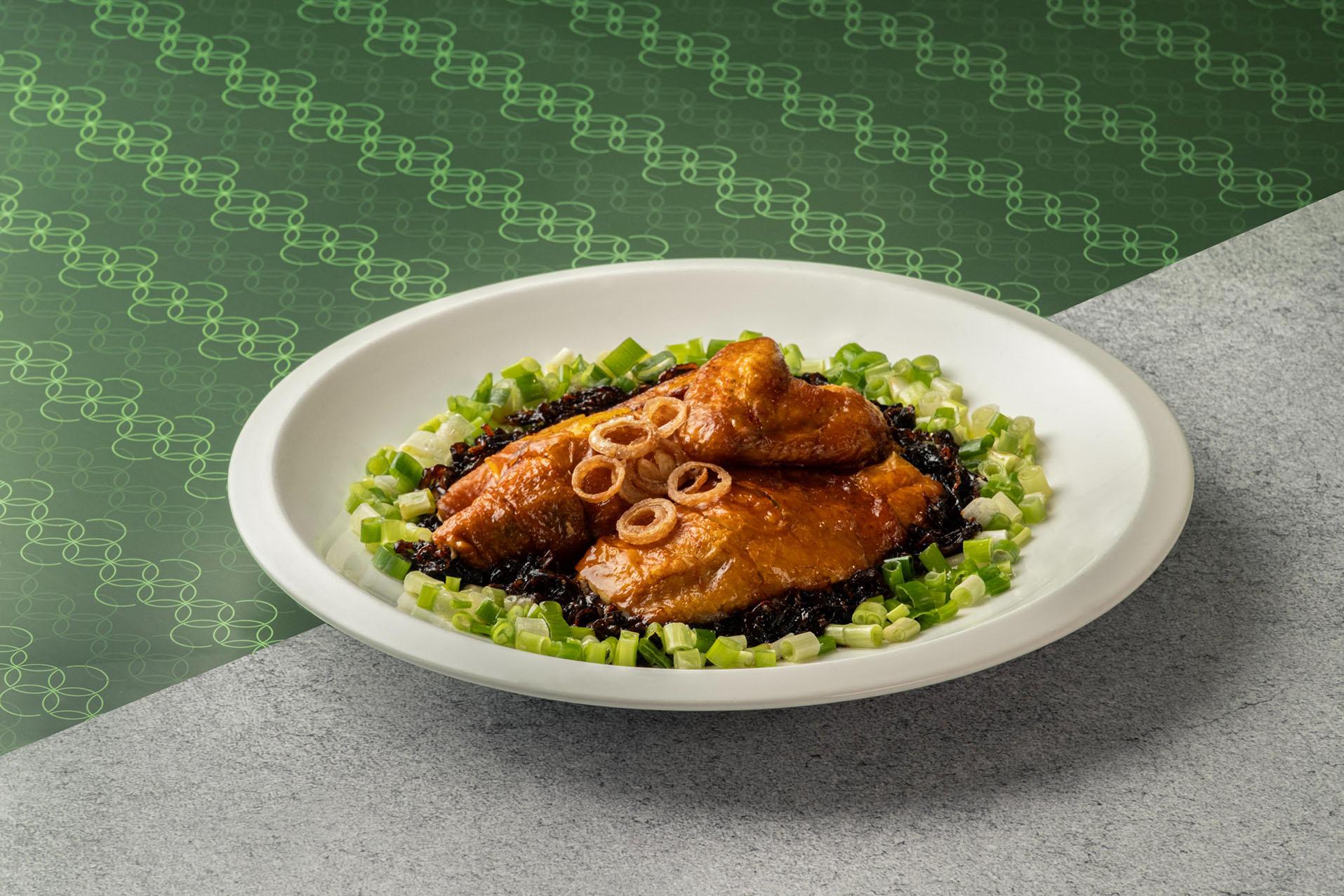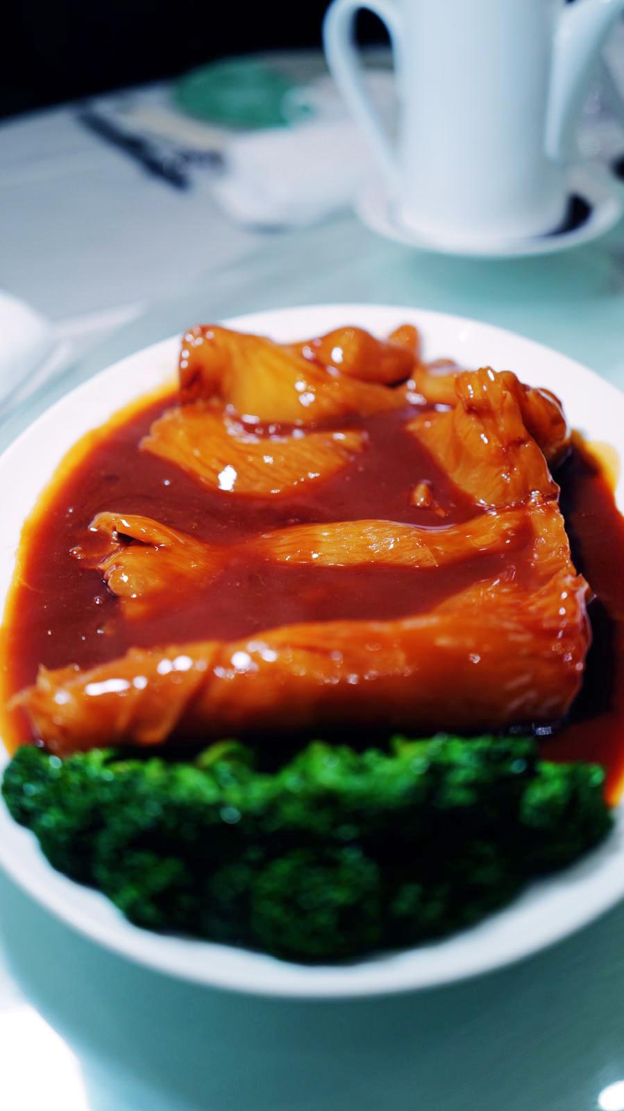鮑汁扣原隻六頭花膠皇$1280,巨大的六頭花膠搭配濃郁鮑汁,鮑汁以多種上等食材慢火熬製,花膠吸收鮑汁精華並保持滑嫩Q彈,豐富的膠原蛋白滋補養顏,性價比極高。順德名菜「海皇大良炒鮮奶」$208,吳師傅巧妙融合蛋白、牛奶及海鮮,呈現輕盈嫩滑的口感,令人回味無窮。另一經典之作「客家蔥油脆皮炸子雞」半隻$258全隻$488則以薄脆雞皮搭配秘製蔥油,香氣濃郁。此外,「紫圖蜜汁火方」結合浙江傳統與現代創新,以紫薯饅頭配雲南宣威火腿及桂花蜜,呈現視覺與味覺的雙重享受。其他推薦菜式如「臘八蒜蓉蒸原隻開邊龍蝦」及「意大利黑醋蜜瓜香煎本地松阪豬」,更以獨特風味展現中庭對食材的尊重與環保理念。晚市亦有提供八道菜嚐味套餐 (港幣$788兩位起),一次過品嚐中庭招牌菜式。