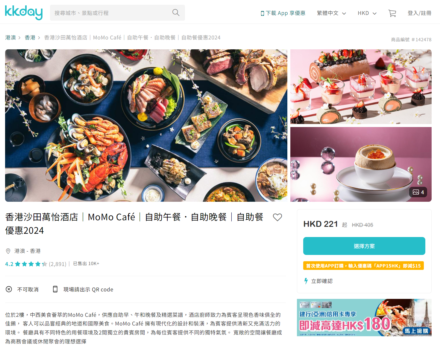 香港沙田萬怡酒店 MoMo Café 自助餐買一送一