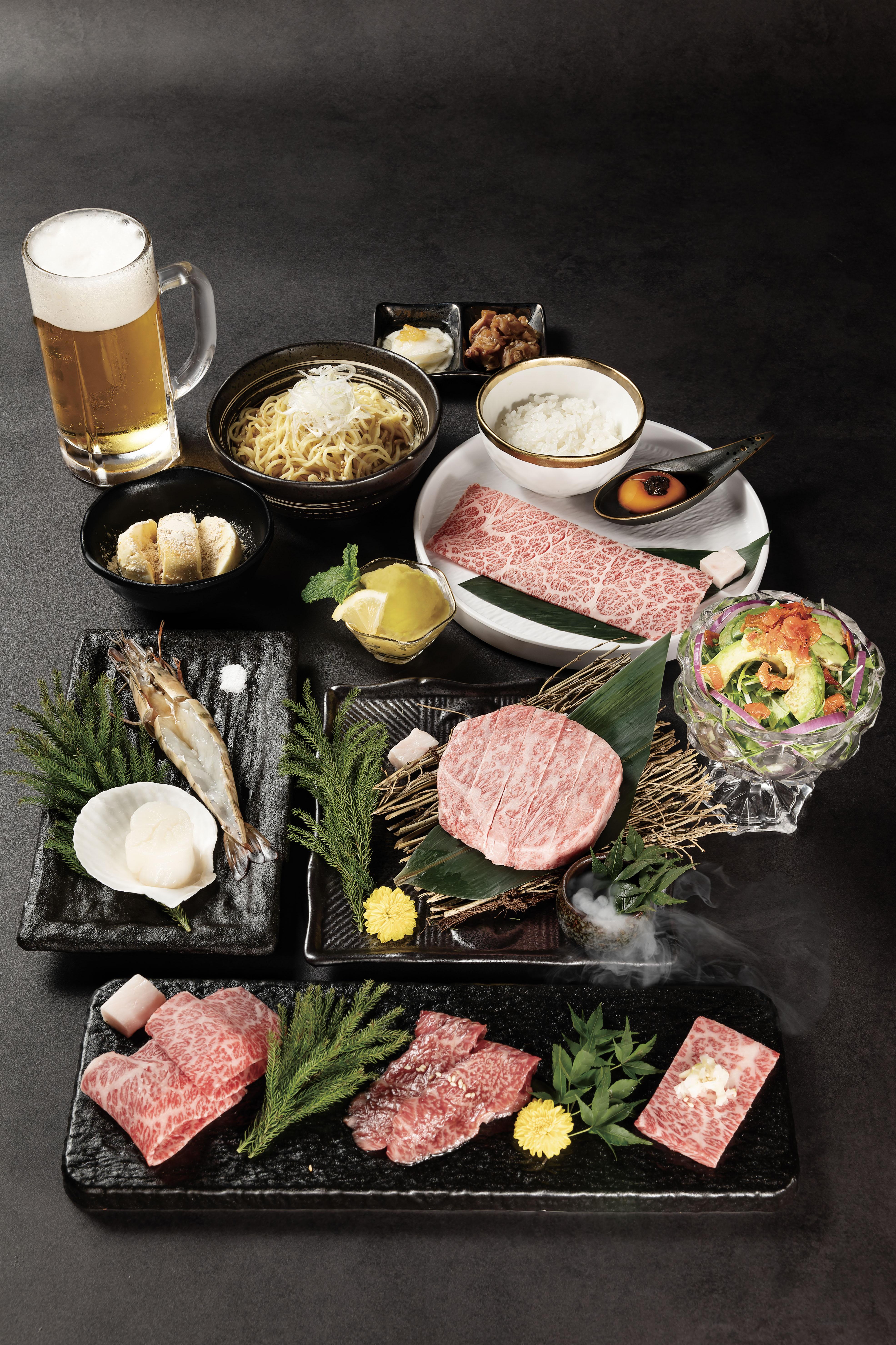 神戶牛 ‧ 和牛極上一人前餐目分為神戶牛牛柳($888)、神戶牛西冷($828)及神戶牛特上牛肋肉($758)三個價錢,套餐包括醬油魷魚軟骨、北海道大根漬、櫻花蝦水菜牛油果沙律、料理長發辦神戶牛特選部位2片 (柚子蘿蔔泥)、料理長發辦神戶牛特選部位2片 (燒肉汁)、究極日本極上和牛1片(塩醬)、車海老、塩味北海道帆立貝等美食,款式相當豐富!