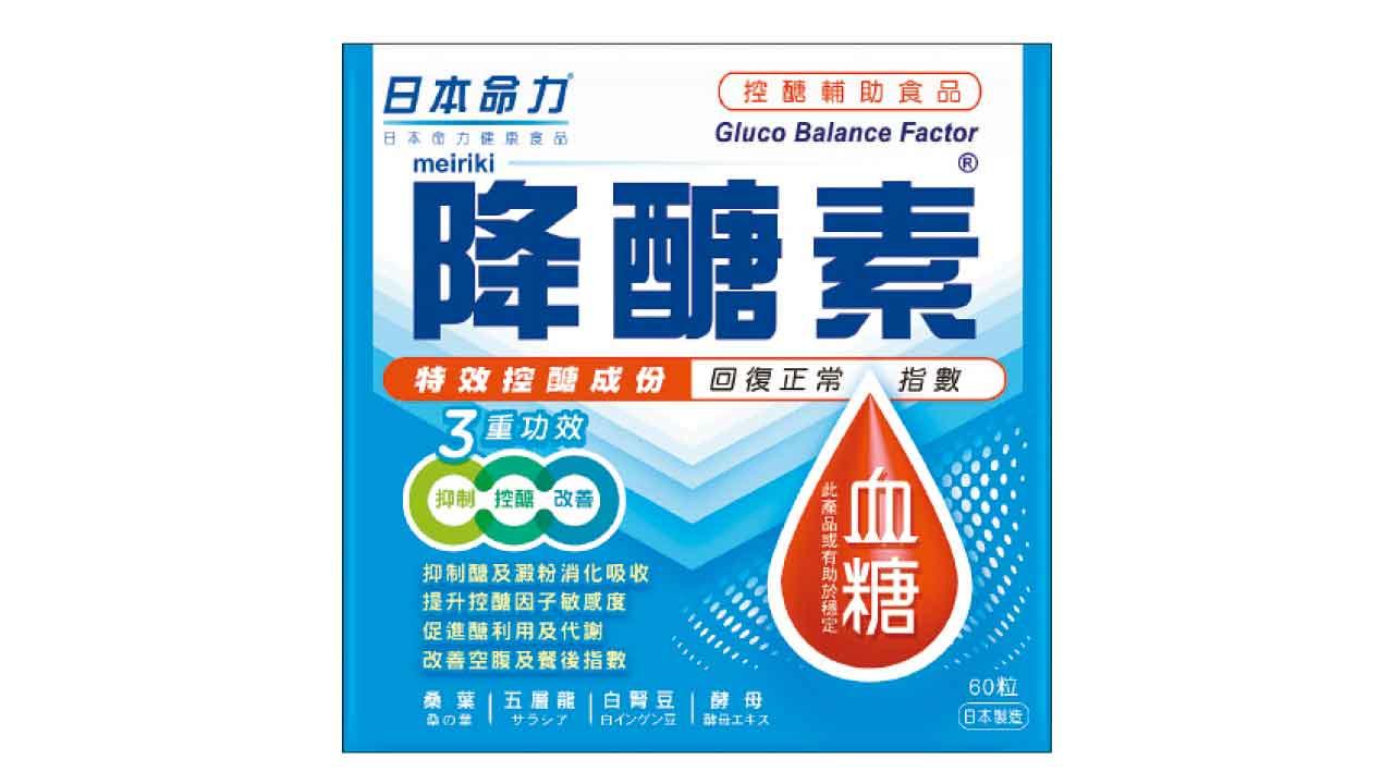 日本命力「降醣素」的獨家控醣配方,含有五層龍、桑葉、白腎豆和酵母精華四大天然特效成分,能達到「抑制、控醣、改善」的三重功效。透過抑制醣及澱粉消化吸收、提升控醣因子的敏感度及促進醣代謝,速效達至30分鐘降低餐後指數,助你全方位改善「三高」問題。