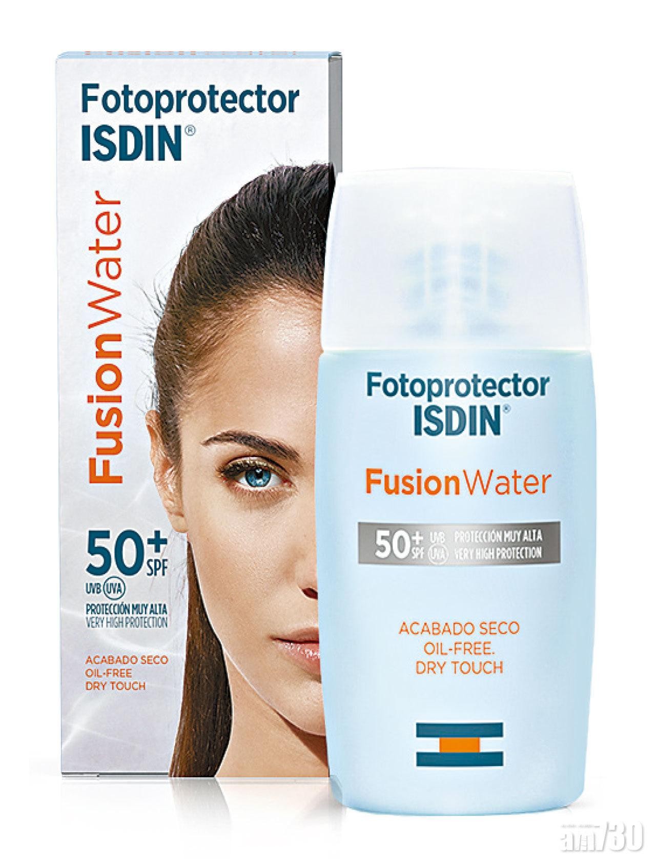 然而,不少人都很討厭傳統防曬液那種厚重、塗抹後久久不散的黏膩感,到底有沒有一種是全效防曬之餘,塗抹後又像隱形般保護肌膚﹖隸屬於西班牙化妝、香水集團Puig和百年製藥企業Esteve兩大集團的西班牙No.1防曬品牌ISDIN(怡思丁)推出的「多維光護沁融水感防曬液SPF50+」就採用嶄新科技,研發出一支真正以「水」造的防曬液,水感度高,推開後瞬間吸收,絕不油膩,清爽輕透。而且防水防汗,並無添加酒精、油分及香料等物質,塗抹在濕膚上都不會與水混合而變得泛白。此外,它更加入玻尿酸、尿囊素及維生素E等護膚成份,具有保濕及抗衰老的美容功效。一支有齊三種功效,絕對是夏日必備的防曬液!