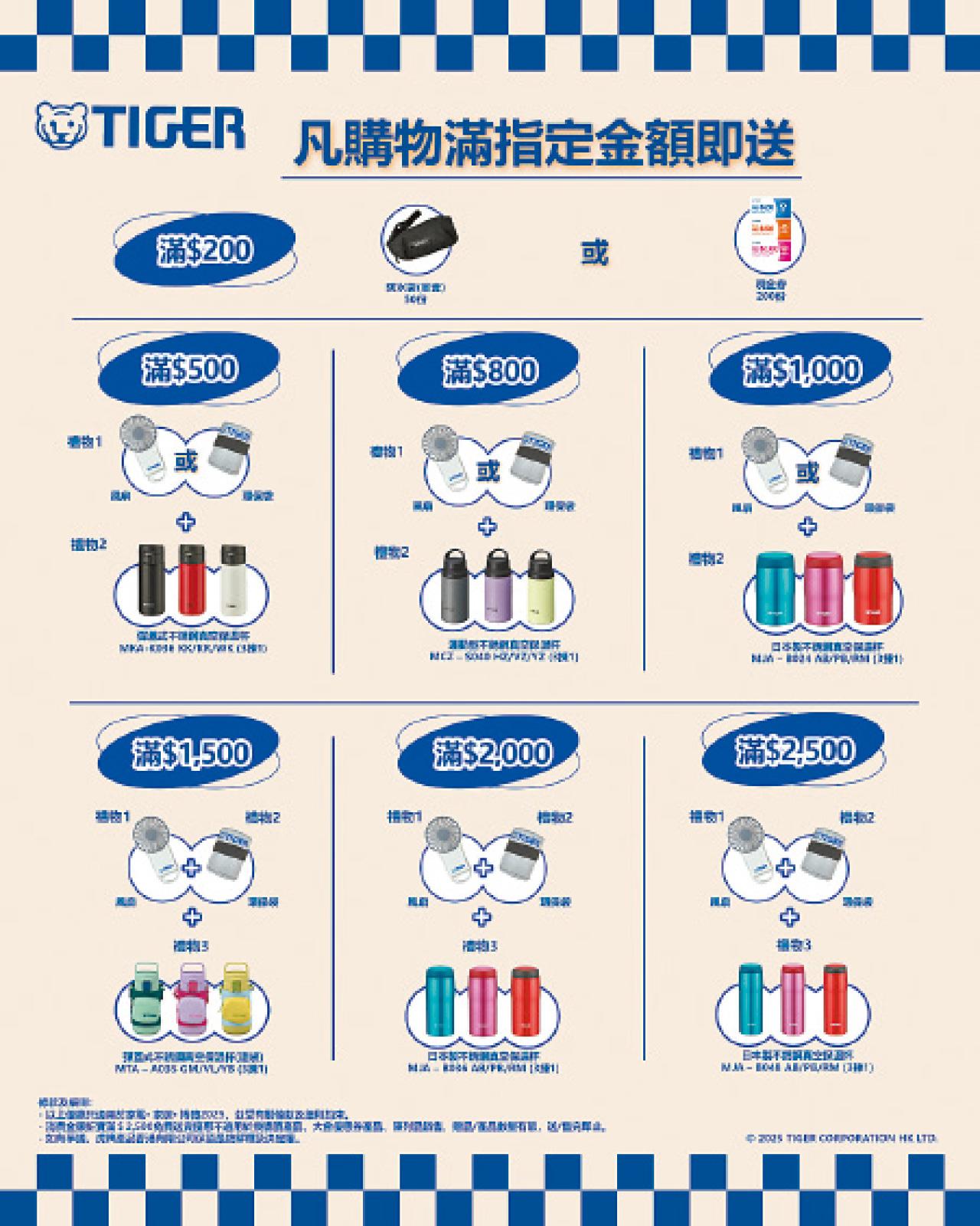 返回 特刊 2025-08-14 04:29:35 日報 2025家電.家居.博覽 X TIGER會場限定優惠 分享: 【攤位編號:3F-A01】 又是一年一度入手居家筍貨的好時機,Tiger推出激多會場限量優惠,知慳識儉的各位絕對不能錯過! 1. 激筍價$148購入保溫杯,半價換購手斟壺! 2. 買滿$200送小禮物;買滿$300以$99換購指定保溫杯;滿$500起再送保溫杯;多買多送!! 3. 凡於會場買日本杯2件或以上即享每件減$20優惠 4. 凡於會場買電飯煲即送日本製保溫杯1件 5. 凡於會場買電熱水瓶即送自家製清潔用檸檬酸1盒及日本製保溫杯1件 買得多送得多!把握機會來掃貨!數量有限,送完即止。
