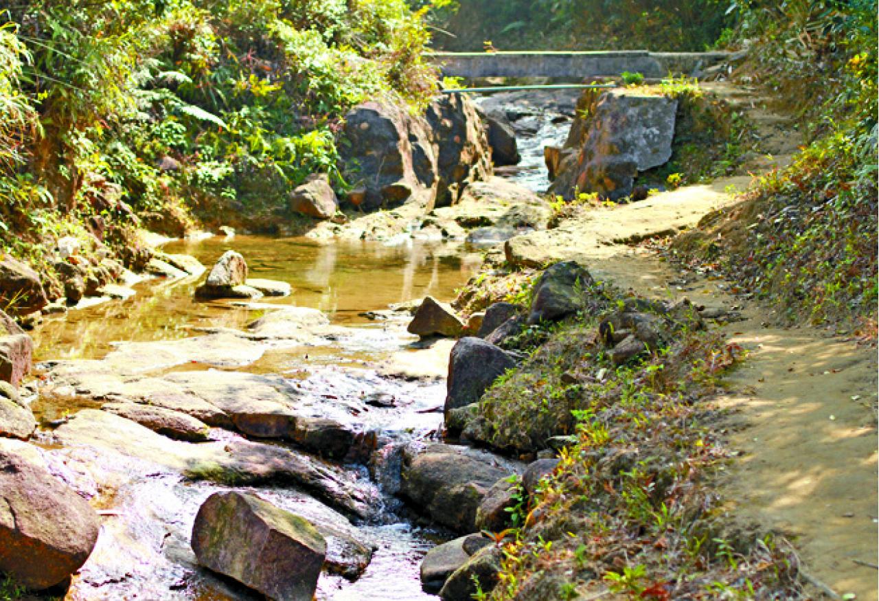 小水池是小馬坑的一部分,上面的一段澗道頗為平緩,兩旁有泥徑,方便步行。不久泥徑消失,需要在大石上行走,此時澗道亦緩緩升高,高處是一個狹長的小水潭,看到一縷白線從石縫之間跳出來,水潭旁邊有一方形巨石橫亙著,石面平整,是休息的好地方。1小時前才在鬧市候車,1小時後卻已經身處純天然的寧靜之中,這種便捷,是香港郊野珍貴之處。