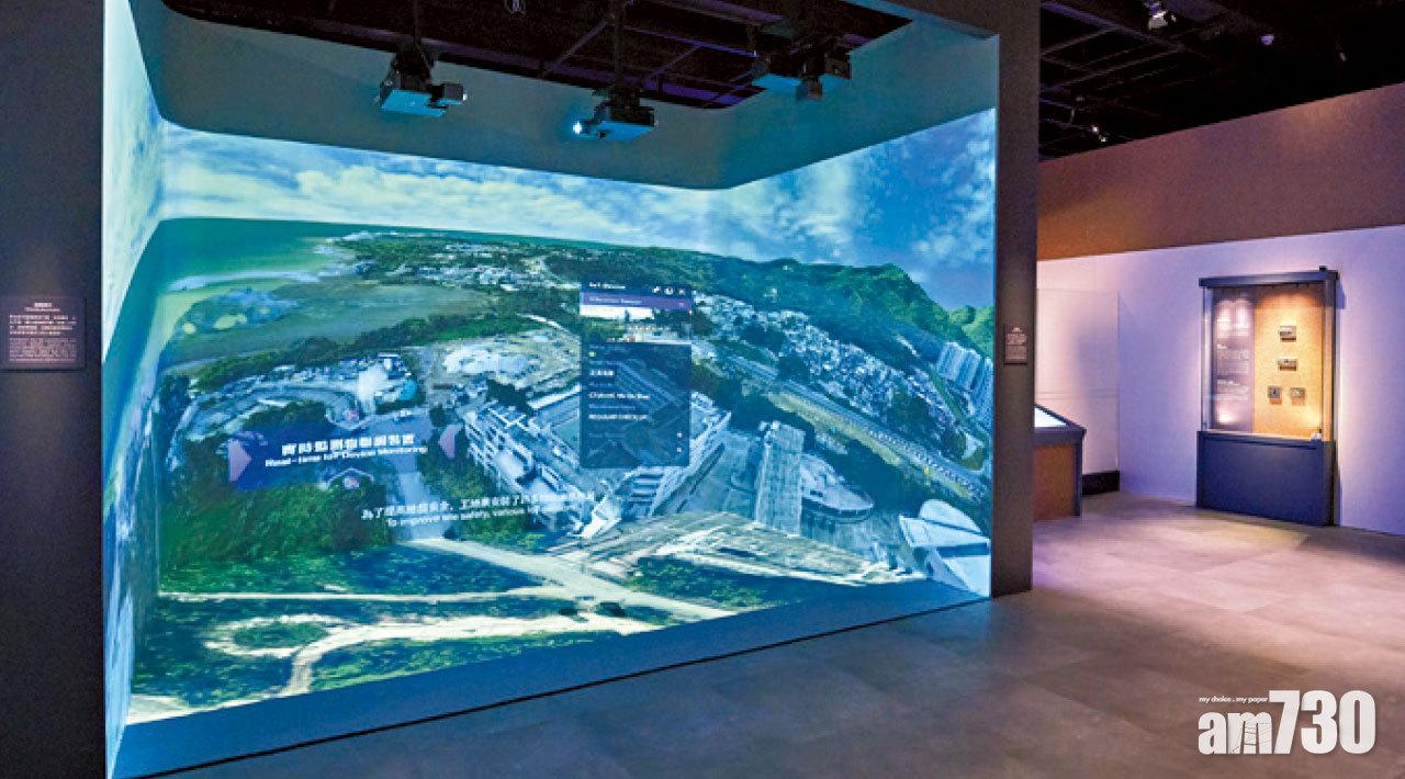參觀者置身在沉浸式虛擬實境空間,能以航拍機的視點俯瞰建築工地。