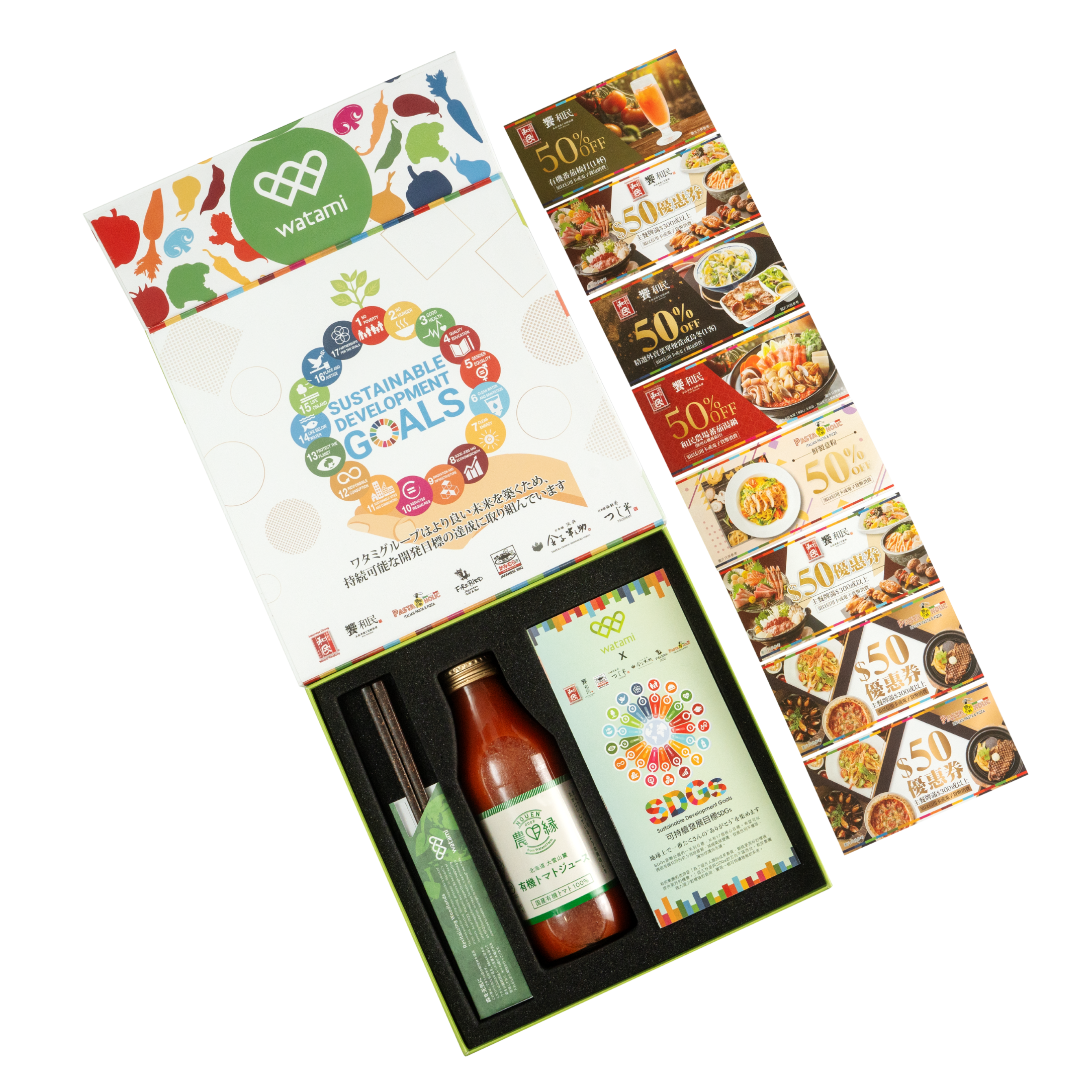 來自日本的和民集團向來著重為食客供應安全安心的美食,同時熱心於環保,多年來在日本舉行植樹活動、與特定的非營利組織School Aid Japan (SAJ)協作援助發展中國家的兒童就學及生活。由 2023 年 12 月 18 日起,和民推出限量 80 份的環保禮盒(HK$109),禮盒內包括來自和民農場的番茄汁 500ml (1 支)、和民森林樹木製造的木筷子(1 對),以及 6 款總值超過 HK$300的居食屋「和民」、饗和民及意粉狂熱 PASTAHOLIC 優惠券,非常實用!
