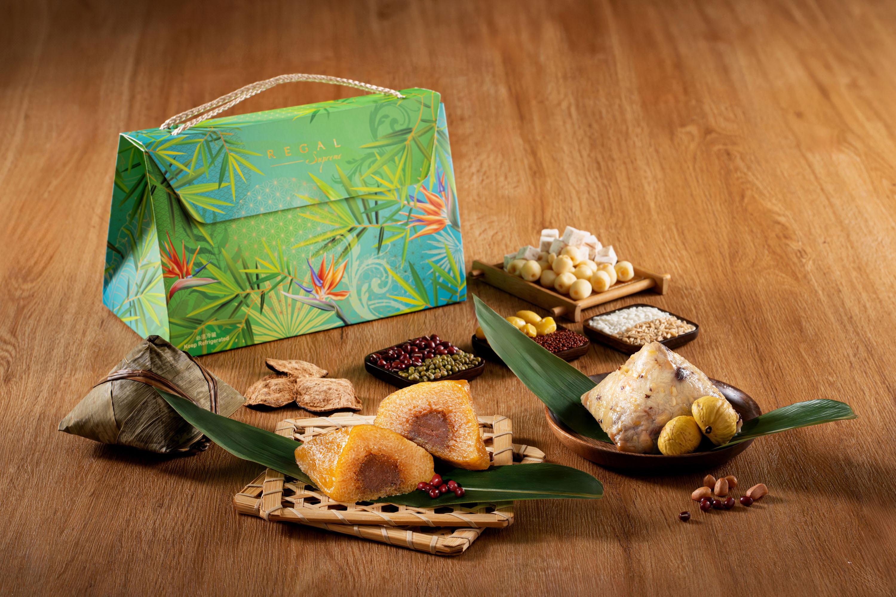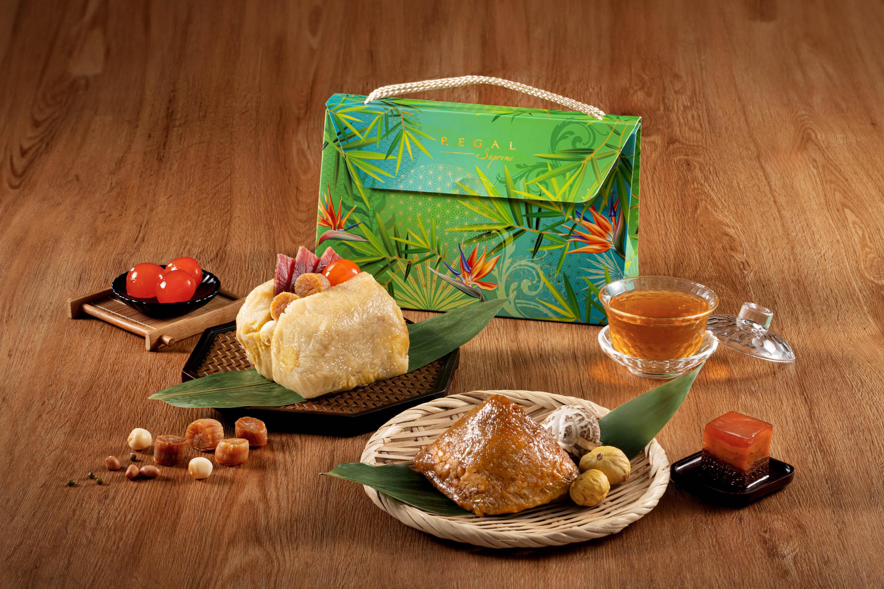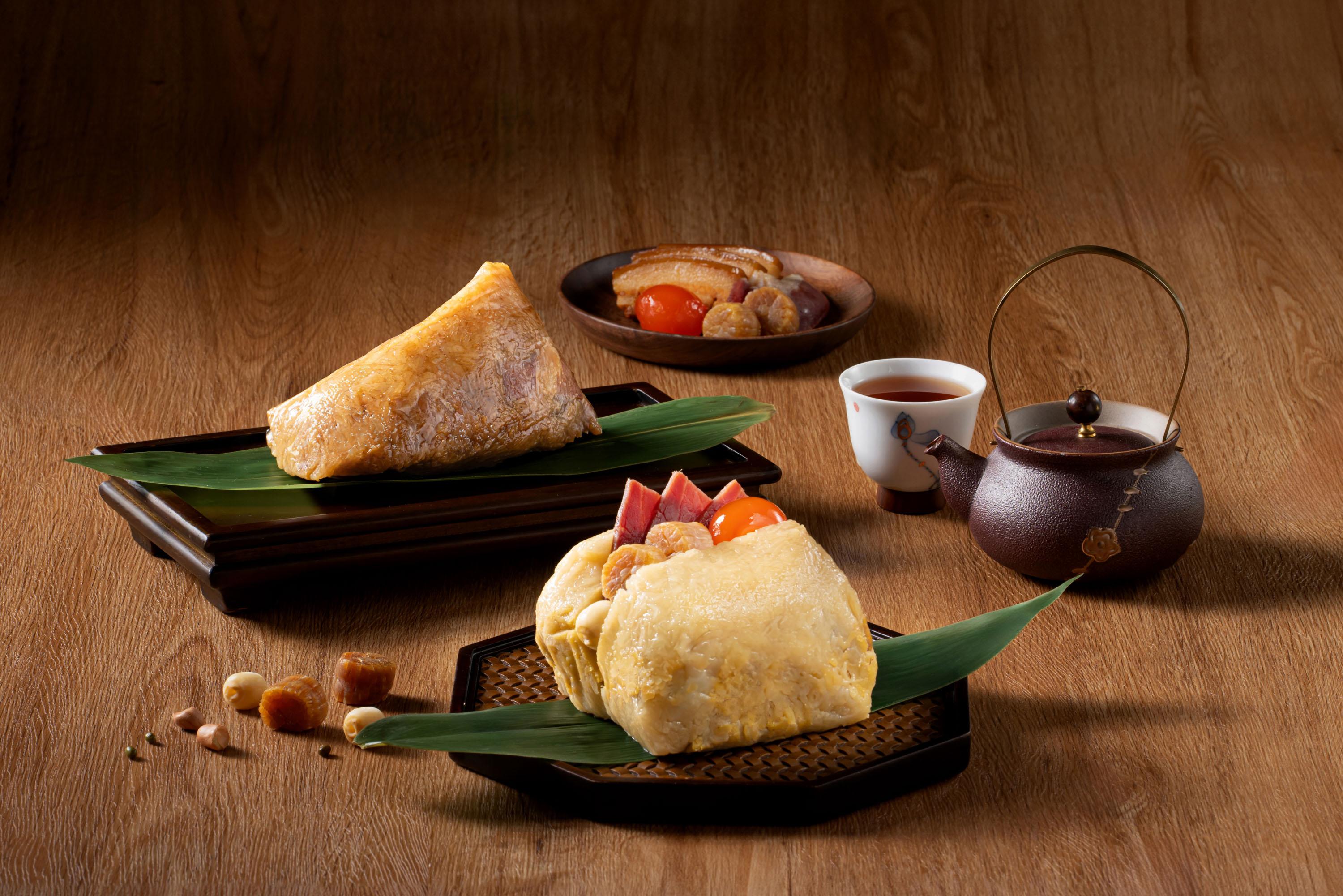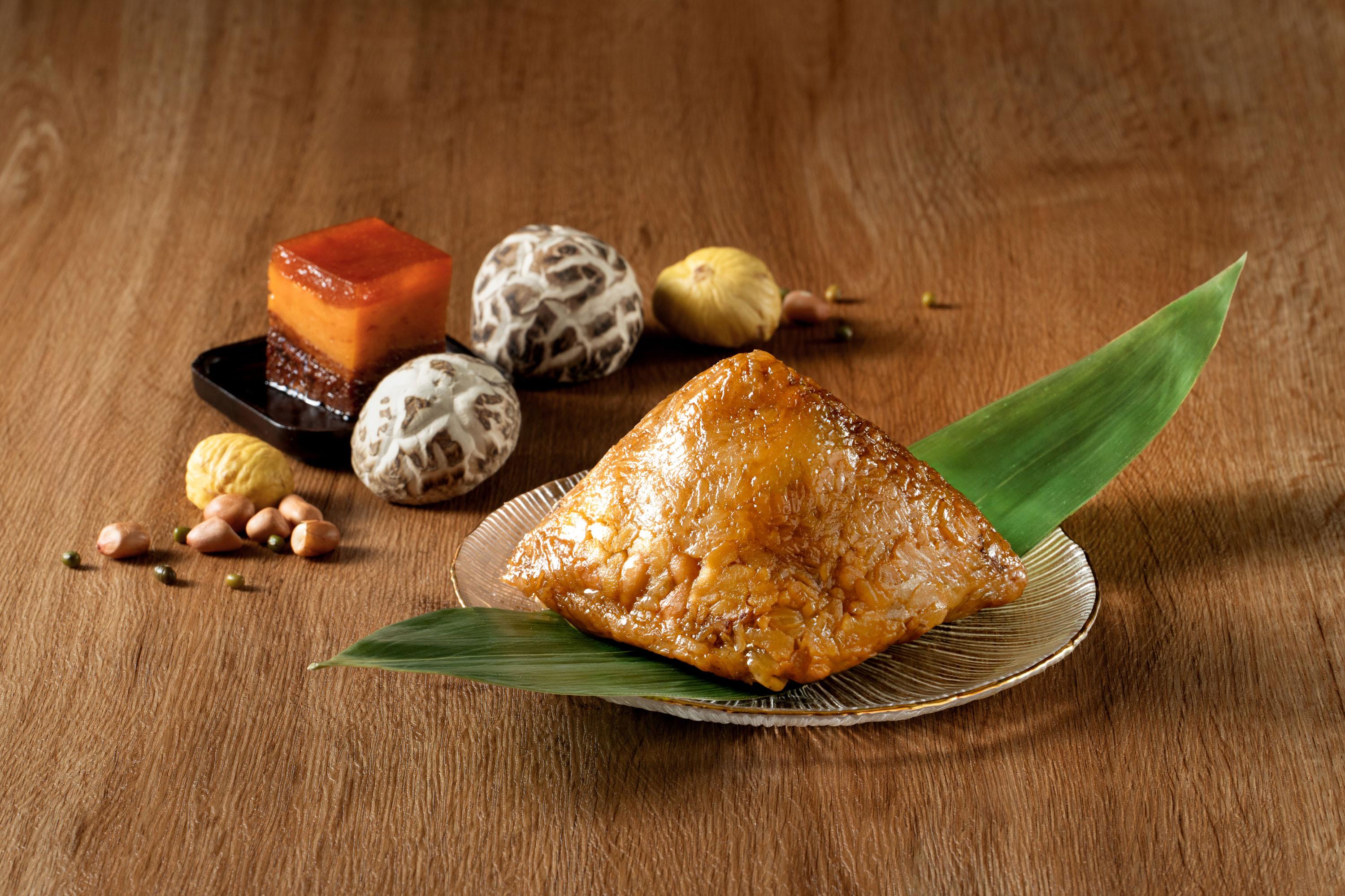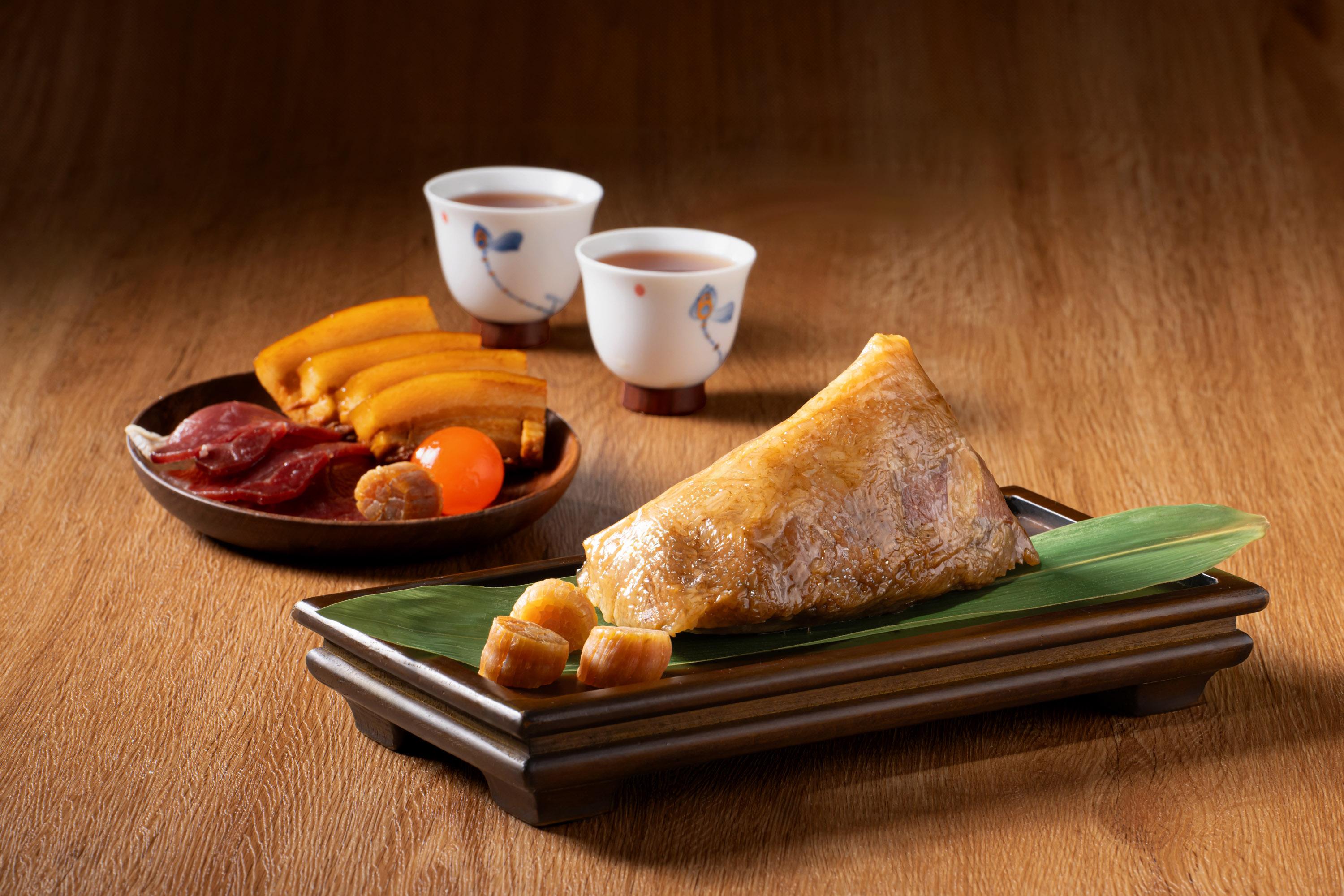 一眾端午粽中,推介富豪至尊原隻鮑魚瑤柱火腿粽,以肉質厚實的十頭鮑魚、日本宗谷頂級乾瑤柱、金華火腿、五花腩肉入饌,用料上盛,啖啖甘香豐腴。富豪至尊花膠螺頭金腿瑤柱粽則以傳統名貴中式燉湯為靈感,加入滋潤養顏的花膠及螺頭,配上日本瑤柱、金華火腿及冬菇,真材實料,味道濃郁如燉湯。另外還有兩款今年新推出的上海粽,特別以濃而不鹹的上海醬油醃製糯米,烹調後的糯米呈焦糖色,味道更有層次。富豪至尊金腿瑤柱嘉湖粽外型呈長條形,油潤光滑的糯米伴隨金華火腿散發的迷人肉香;富豪至尊栗子東坡肉粽以傳統上海名菜「東坡肉」入饌,口感軟綿的糯米,包裹著入口即化的五花腩肉,加入清甜栗子豐富口感,同樣滋味。