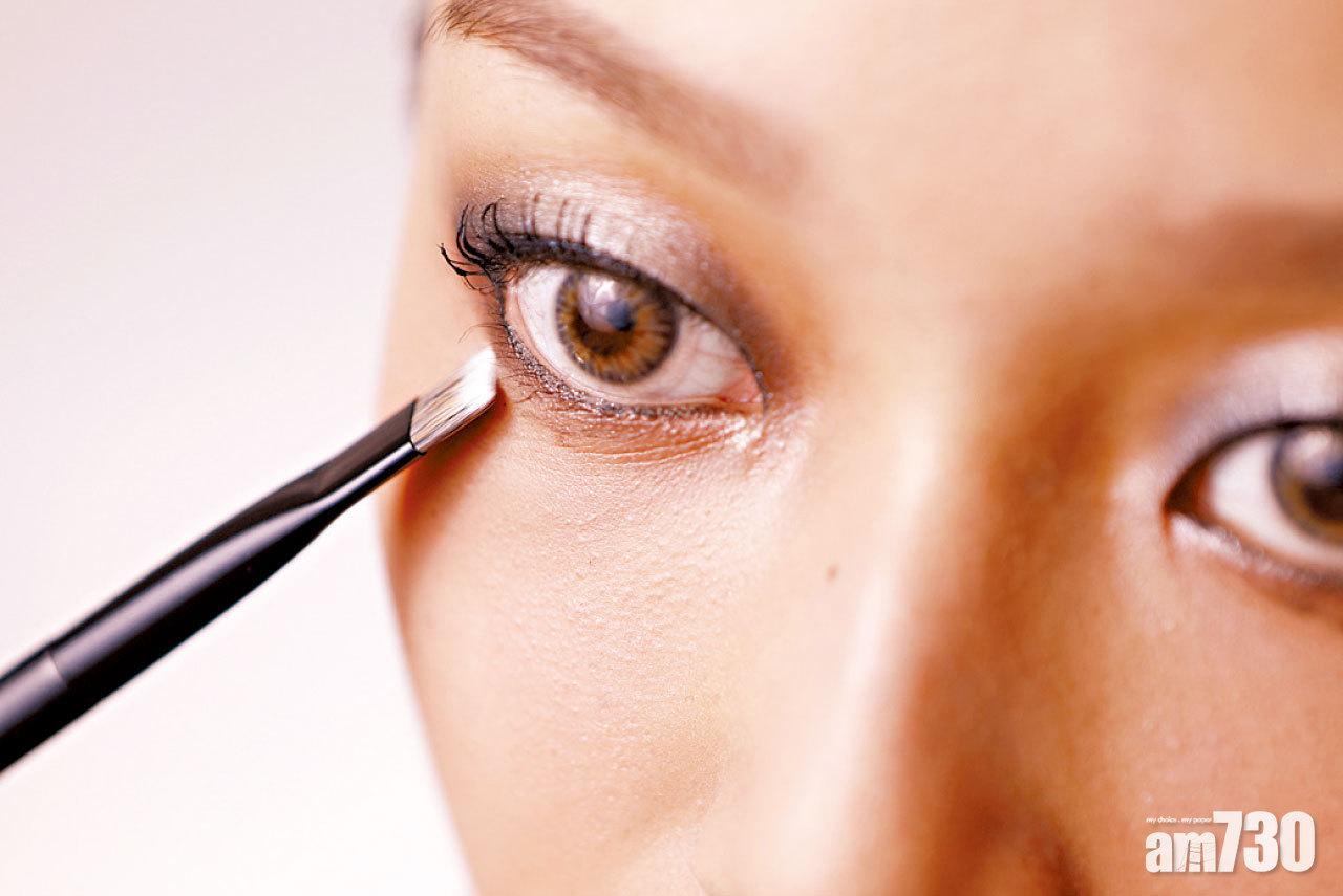 Step 3 下眼線和位置掃上少許銀色眼影作highlight,帶來提亮效果。