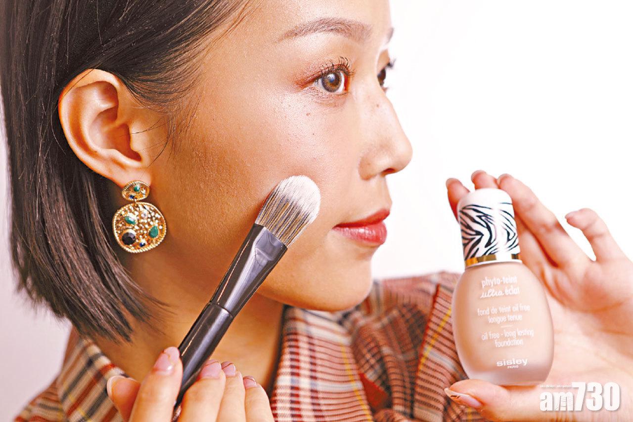 Step 1 選用質感輕盈透亮的粉底液,薄薄的均勻地塗滿整張臉,締造自然中帶光澤的剔透底妝。