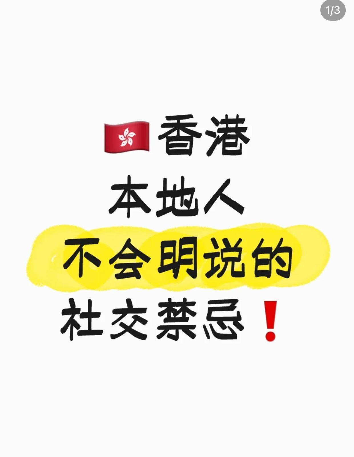 近日,有小紅書用戶發文分享「香港本地人不會明說的社交禁忌」,並列有6點,包括「隱私邊界別越線」、「餐桌禮儀別大意」、「言行舉止藏細節」、「數字習俗要記牢」、「公共秩序別忽視」,以及「送禮說話避忌諱」。而除了發文者所說的6點外,一眾網民亦紛紛留言,列出5項港人社交的禁忌!