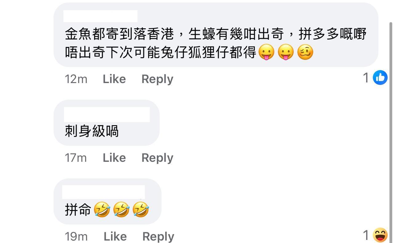雖然發文者本人就大讚新鮮又好食,但網民就唔係咁睇。有網民表示發文者的勇者舉動與「拼命」無異,「原來咁都入得境」、「淘大型電器搞到爆炸已經過時」,又好奇「食完有冇痾到七彩」,更有網民諷刺道「金魚都寄到落香港,生蠔有幾咁出奇,拼多多嘅嘢唔出奇下次可能兔仔狐狸仔都得」。