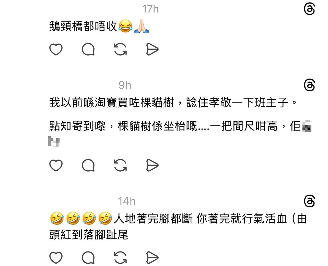 事主對貨不對版情況感到晴天霹靂,狠批「到貨打開佢俾對咁嘅嘢我」,但就為大批網民帶來無限歡樂。有網民表示「好養生」、「呢件事好拼多多」、「講真一定唔會撞鞋」,更有人笑稱「D粒粒好似14粒(臭屁蟲卵)」、「生殖腺幾隻字仲要咁搶眼」,揚言適合「去鵝頸橋花火大會」。