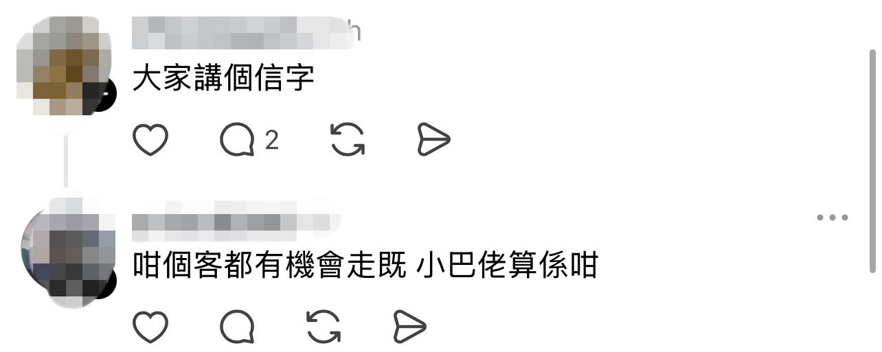 目擊全個過程的發文者大讚「成個交易好smooth好彈性」、「香港小巴佬急才小癲」。事件亦引起網民討論,有網民回應「大家講個信字」、「個客都有機會走嘅,小巴佬算係咁」,更感慨地表示「成單嘢好香港」。
