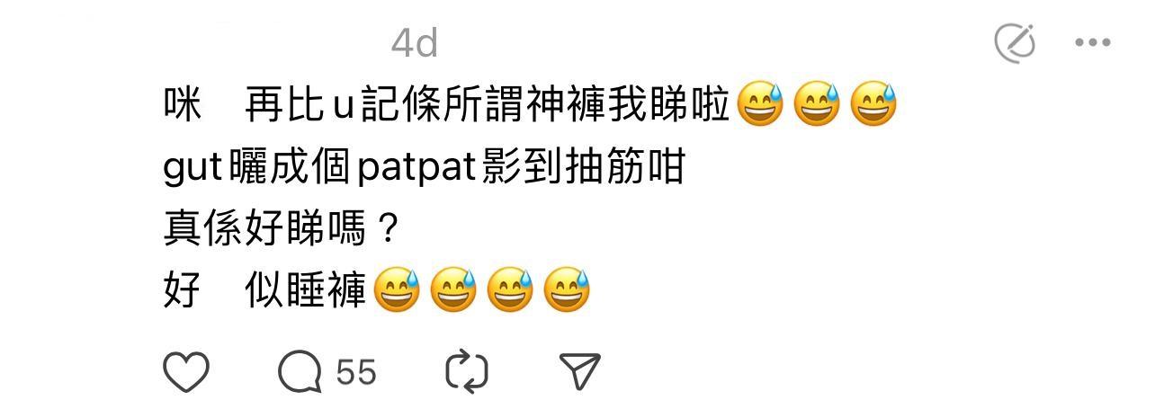 不過有心水清的網民就認為,女生上傳相片到社交平台的舉動,其實是「醉翁之意不在酒」,只因這條褲子的用料和cutting較貼身,容易突顯臀部線條,因此有網民認為分享照片只為「呃like」、「話俾人知自己身材好」、「絕對唔係為咗舒服好著而買」。
