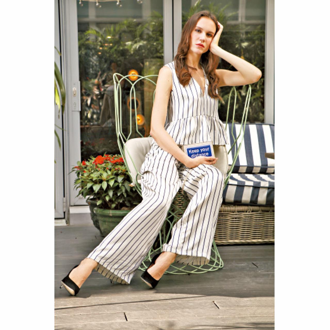 Iris & Ink Cotton Blue Striped Top £120 (約1,143港元)、Pants £160 (約1,524港元)