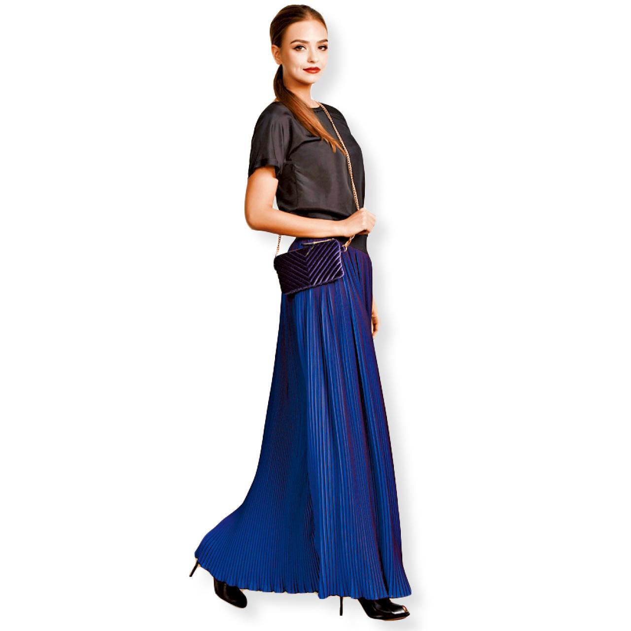 Iris & Ink Satin Wrap Dress £130 (約 1,238港元)、Navy Culottes £120 (約1,143港元)