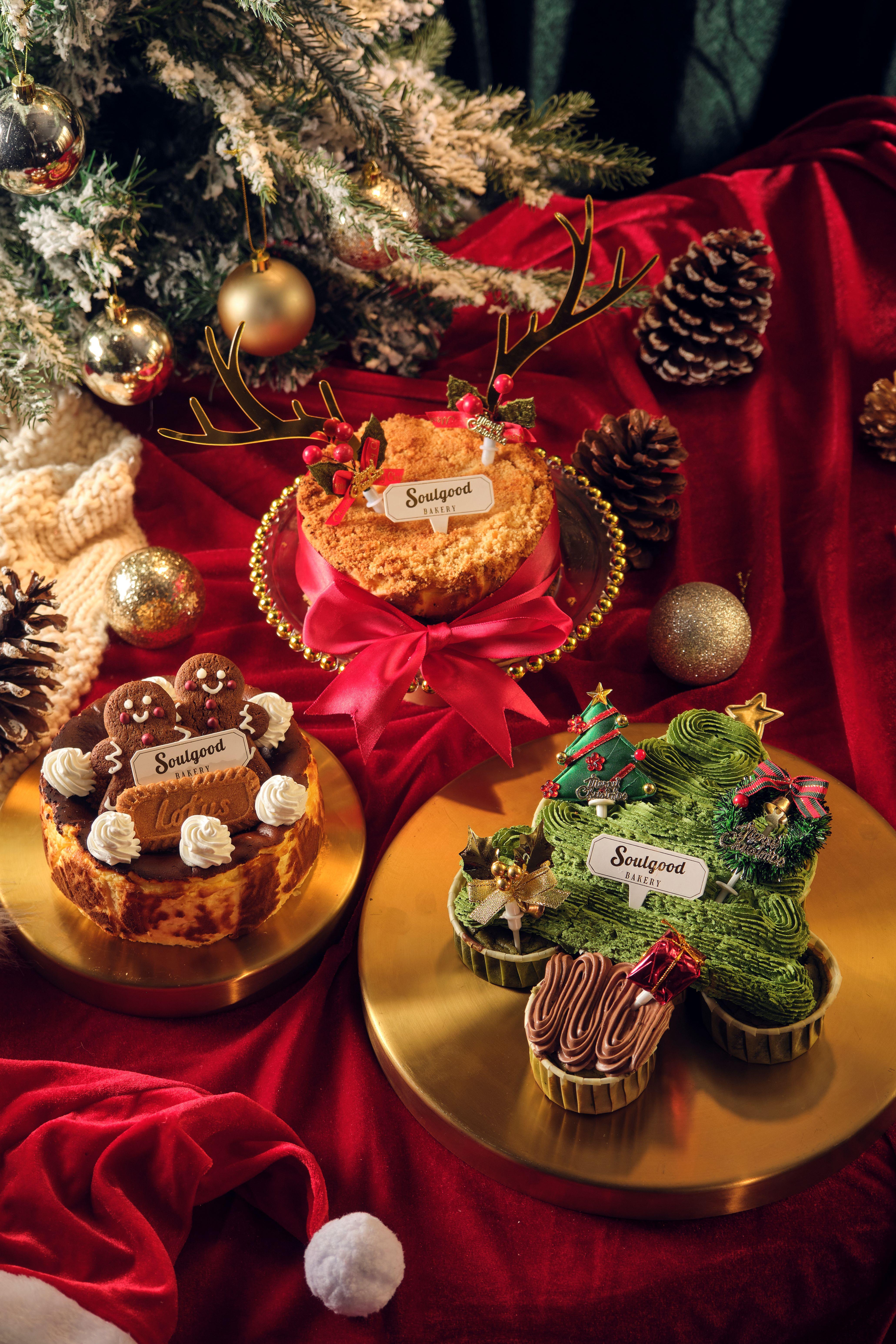 今個聖誕,一於以Soulgood Bakery的節日限定口味,增添聖誕氣氛!全新焦糖脆脆薑餅人巴斯克芝士蛋糕(6吋$580;8吋$780;4吋$180),面層飾有自家製的薑餅人,造型可愛。薑餅人以傳統食譜製作,經典的黑糖、薑味和肉桂,是不容錯過的聖誕口味。加上濃郁細滑的原味巴斯克芝士蛋糕,配上Lotus Biscoff焦糖餅乾醬及焦糖曲奇脆脆,層次豐富,甜而不膩。另一款全新節日限定口味—抹茶聖誕樹巴斯克芝士蛋糕(6吋$520;8吋$720;件裝$68),選用日本丸久小山園抹茶粉製作,茶香濃郁回甘,馥郁芳香的抹茶與香濃的芝士,絕對是完美組合。造型別緻的原味士多啤梨聖誕帽巴斯克芝士蛋糕(6吋$520;8吋$720;件裝$68),以產自美國加州的長柄士多啤梨,裝飾城聖誕帽造型,加上減糖配方的芝士蛋糕,令整體口感更輕盈。喜歡朱古力,便不要錯過特濃朱古力草莓巴斯克芝士蛋糕(4 吋$180),以法國進口的可可粉製作蛋糕,配以香氣濃郁的新鮮士多啤梨,每一口都是完美滋味。去年的聖誕限定口味—蘋果金寶巴斯克芝士蛋糕(6吋$560;8吋$760;4吋$180),今年亦再次回歸。蛋糕面層是金黃香脆的金寶脆脆,蛋糕夾心加入富士蘋果粒,加上香濃的肉桂,充滿濃厚的冬日氣氛。