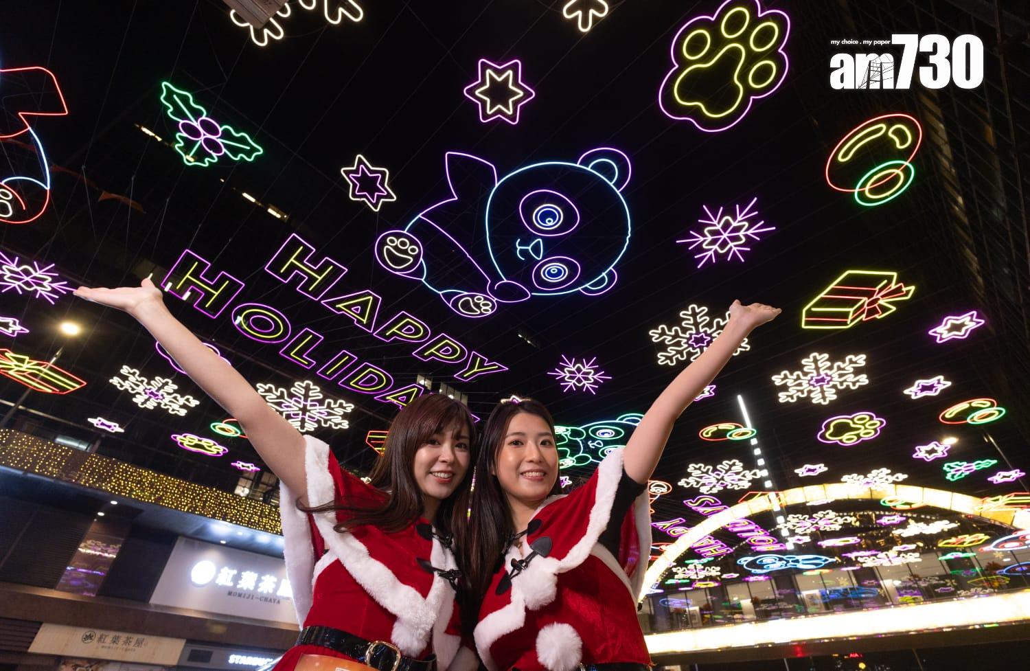 尖沙咀中心及帝國中心將會展出全新「Pandastic Christmas」數碼光影藝術作品,萌趣熊貓可愛現身於光影幕牆之中,駕駛著閃亮火箭探索聖誕禮物工廠,向大家送上窩心聖誕祝福。而麽地里亦會延續動畫作品,萌趣熊貓跟迷人雪花在傳統燈飾下閃耀;千禧新世界香港酒店採用環保燈泡堆砌出金光閃閃的「垂珠」,為聖誕佳節平添璀璨氣氛。南洋中心外牆打造開心歡欣的聖誕景象,牆上掛上「Merry X’mas」字眼;永安廣場則以色彩繽紛又可愛的聖誕老人為主題,聖誕老人駕著車駛過本港地標。富豪九龍酒店以冬日雪影聖誕為主題,跟大家共度白色聖誕;海景嘉福洲際酒店以火樹銀花為主題,採用紅色和銀色的節日裝飾搭配閃爍燈光,送上節日祝福;帝苑酒店今年掛上三十八顆巨型雪花,附有閃爍動態效果,營造浪漫冬日氣氛;九龍香格里拉內有精心佈置的聖誕裝飾,包括6米高的閃亮聖誕樹,亦有聖誕裝萌趣熊貓跟大家會面;而香港警務處的可愛吉祥物「提子」,更穿起聖誕裝束,首次麼地道三條天橋登場,過一個別具特色的「紫色聖誕」。