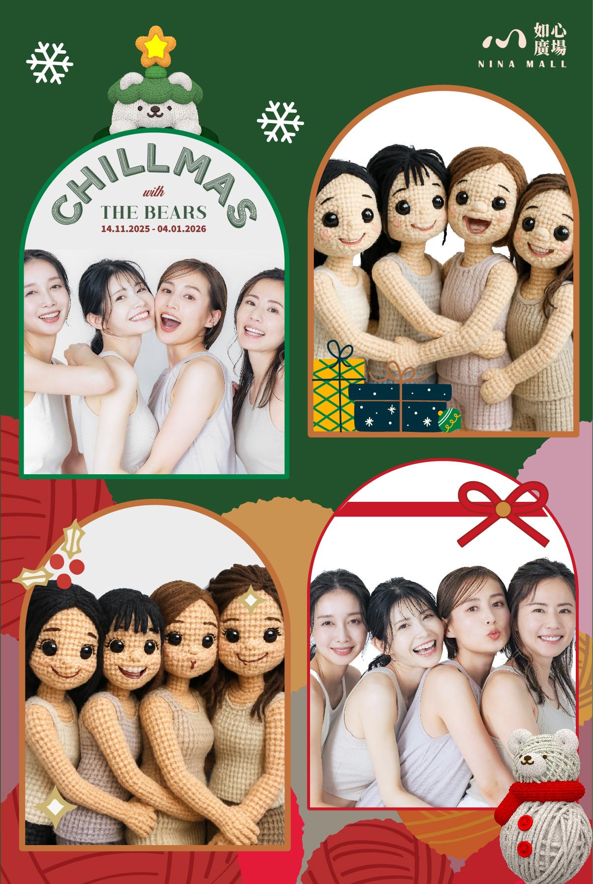 8米高的Chill織熊化身將巨型聖誕樹,閃耀登場於如心廣場一期露天廣場!Chill織熊圍上厚實圍巾、周身環繞繽紛燈泡,散發出溫暖又活潑的節日氛圍,造型超可愛!入夜後,燈飾閃爍將點亮整個空間,帶來甜蜜璀璨的聖誕魔力,打卡必影!此外還有一眾調皮的Chill織熊朋友仔在如心廣場一期及二期四處出沒,等你野生捕捉後來張可愛合照!沙田好運中心、將軍澳翩滙坊及元朗順福糧倉亦設有Chill織熊主題打卡景點,一於進入Chill織熊世界,展開一趟充滿驚喜的冒險啦!