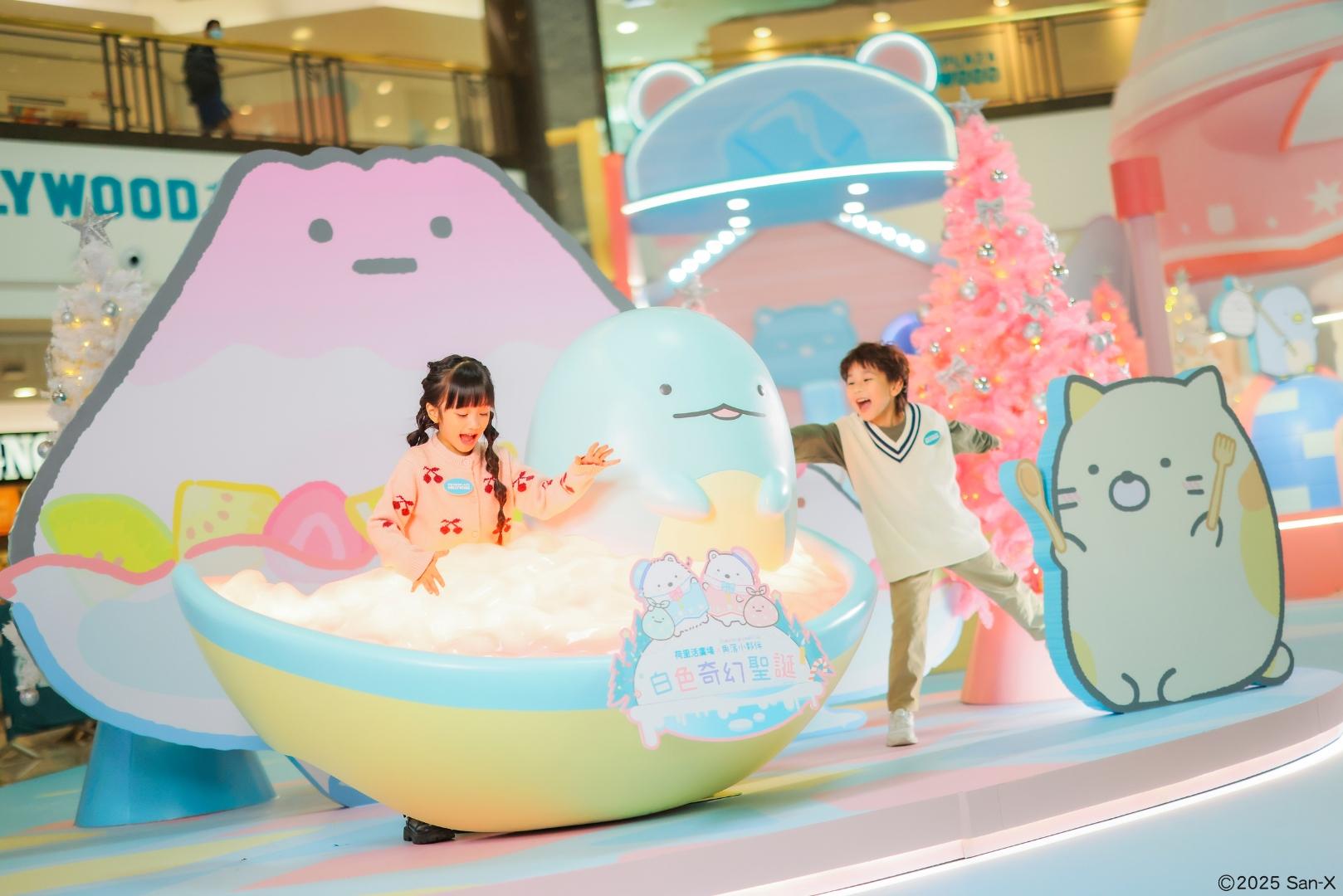 11月15日至2026年1月4日期間,鑽石山荷里活廣場攜手Sumikkogurashi 角落小夥伴打造「白色奇幻聖誕」。活動設6大打卡位及2大玩樂區。商場變身成雪國,不妨與超可愛的5米高毛絨白熊合照。最後別忘記從5米長的「冰極冒險滑梯」滑下及暢玩7米長的「冰雪極地飛索」