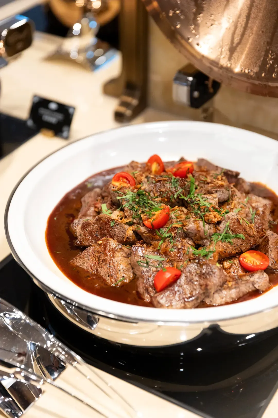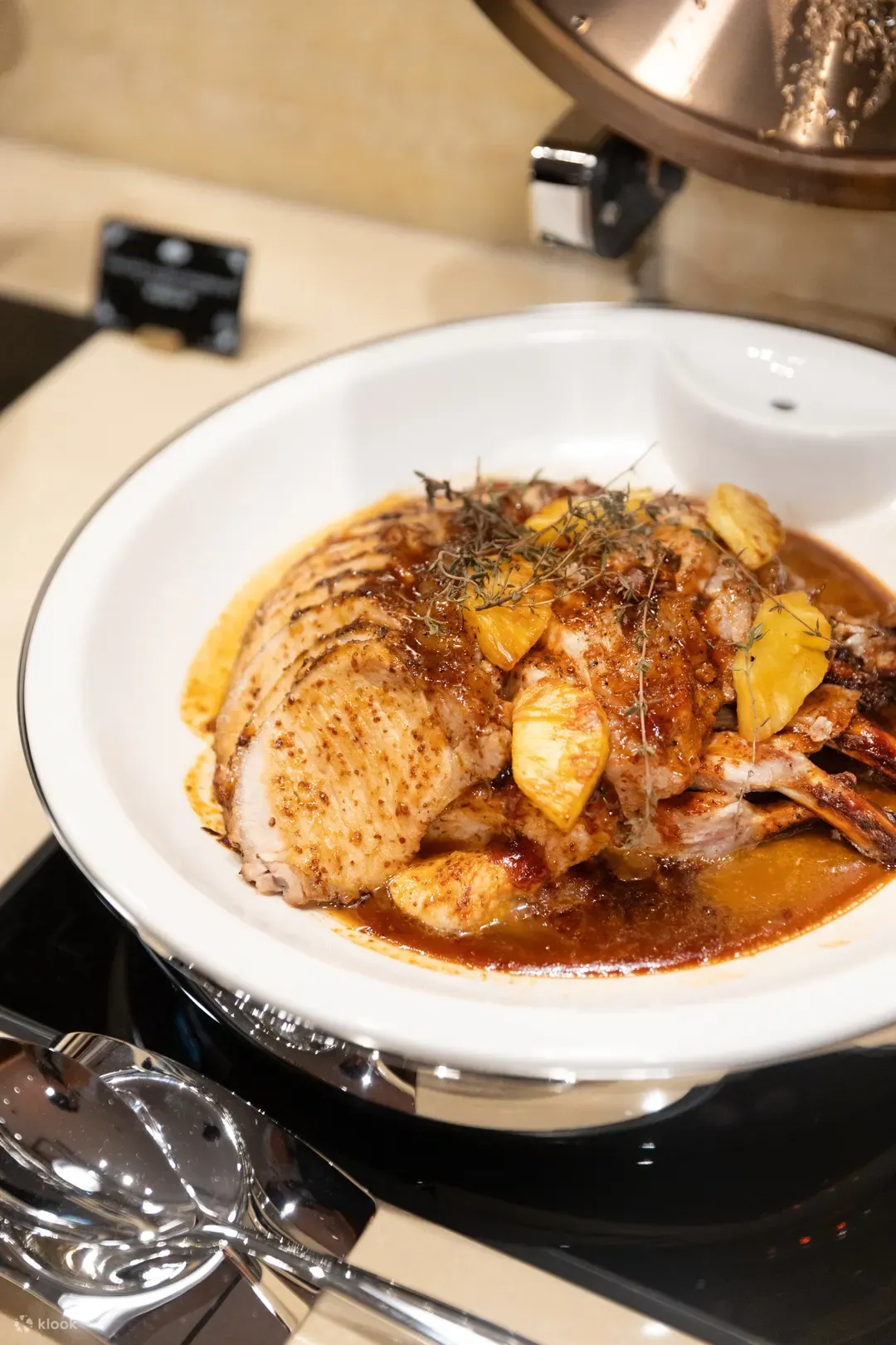 文華東方酒店今次自助餐以海鮮為主打,凍海鮮陣容相當吸引,包括:波士頓龍蝦、生蠔、鮑魚、雪蟹腳及歐洲麵包蟹 等,多款均屬人氣之選。熱食方面亦相當豐富,提供:海南雞、烤火雞、烤牛肋排、帕瑪森芝士意粉、新加坡叻沙麵 等多國料理。