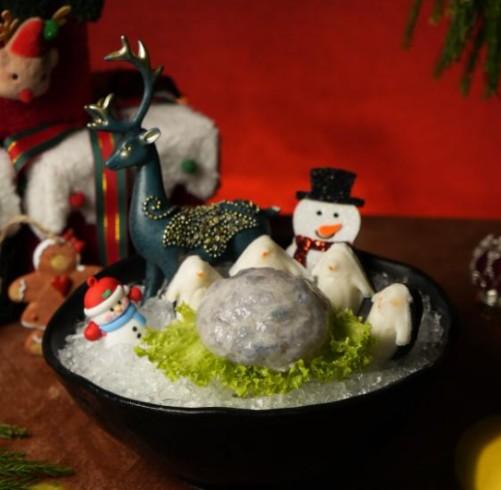「冬日懷石聖誕盛宴」選用季節性食材帶來多款新作及限定料理。重點「皇牌至尊鹿兒島和牛三拼肉肉聖誕樹」,一次盡享世界三大至尊等級部位,包括日本鹿兒島極品A4和牛、USDA Prime美國頂級牛頸脊及USDA Choice美國牛小排,美牛只使用最頂級的2%部位,配上特製懷石和風醬。「一品二食海龍皇」每日空運直送野生加拿大龍蝦,分別炮製清甜刺身,龍蝦殼用來熬湯。「至尊佳節鮮活六珍海鮮匯」用上鮮活沙巴龍躉魚、鮮脆鯇魚、鮮白鰻魚、鮮活南非飽魚、基圍跳跳蝦及鮮活黃蜆,相當豐盛。「企鵝堆雪球」的企鵝丸配以100%墨魚肉製成的墨魚滑,造型玩味趣致。(節日2人餐$798,節日4人餐$1598,均包括「皇牌至尊鹿兒島和牛三拼肉肉聖誕樹」。)