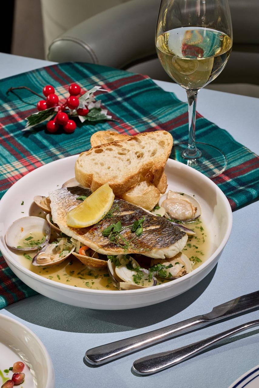 三道菜節慶晚餐($338/位起) 慢烤火雞胸伴以蘑菇、馬鈴薯泥、椰菜仔、甘筍,配上肉汁。 烤西冷扒拼波士頓龍蝦 鱸魚與大蜆配香草牛油汁 蟹肉迷你鬆餅