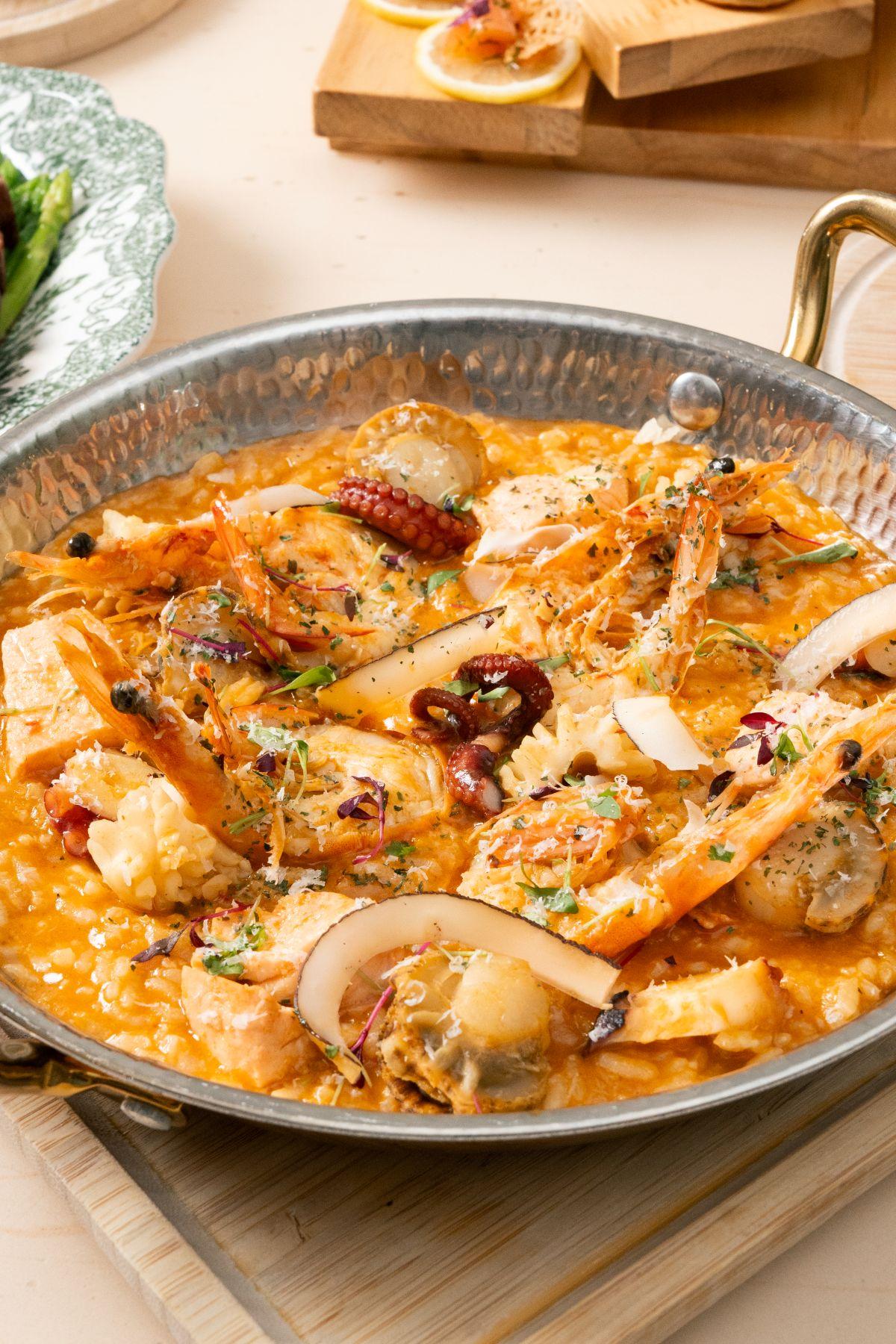 《歡聚分享套餐》(HK$1,888/四位) 暖冬慶典・聖誕新年節日雙人套餐(HK$1,288/兩位) 雙人套餐前菜可選海陸空高蛋白Taco 繽紛調色盤拿破崙(雙人套餐甜品) 海鮮辣味咖喱燴飯(歡聚分享套餐之主菜) 小食拼盤(歡聚分享套餐) 班蘭抹茶雪糕法式吐司(歡聚分享套餐之甜品)